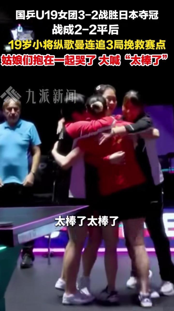 国乒U19女团太棒了!纵歌曼你太牛啦! 11月26日,2025年国际乒联世青赛U19女团决赛,国乒3—2战胜日本队,获得冠军! 前四场双方战成2—2平,最后一场19岁的小将纵歌曼连追3局,拿下了最后一分,直接挽救赛点! 比赛结束的那一刻,姑娘们抱在一起哭了,大喊着“太棒了太棒了”。那场面,我隔着屏幕都感受到了她们的激动和喜悦。国乒的姑娘们太厉害了,在这么大的压力下,还能稳住心态,实现逆转夺冠。 真心为这些姑娘们骄傲!