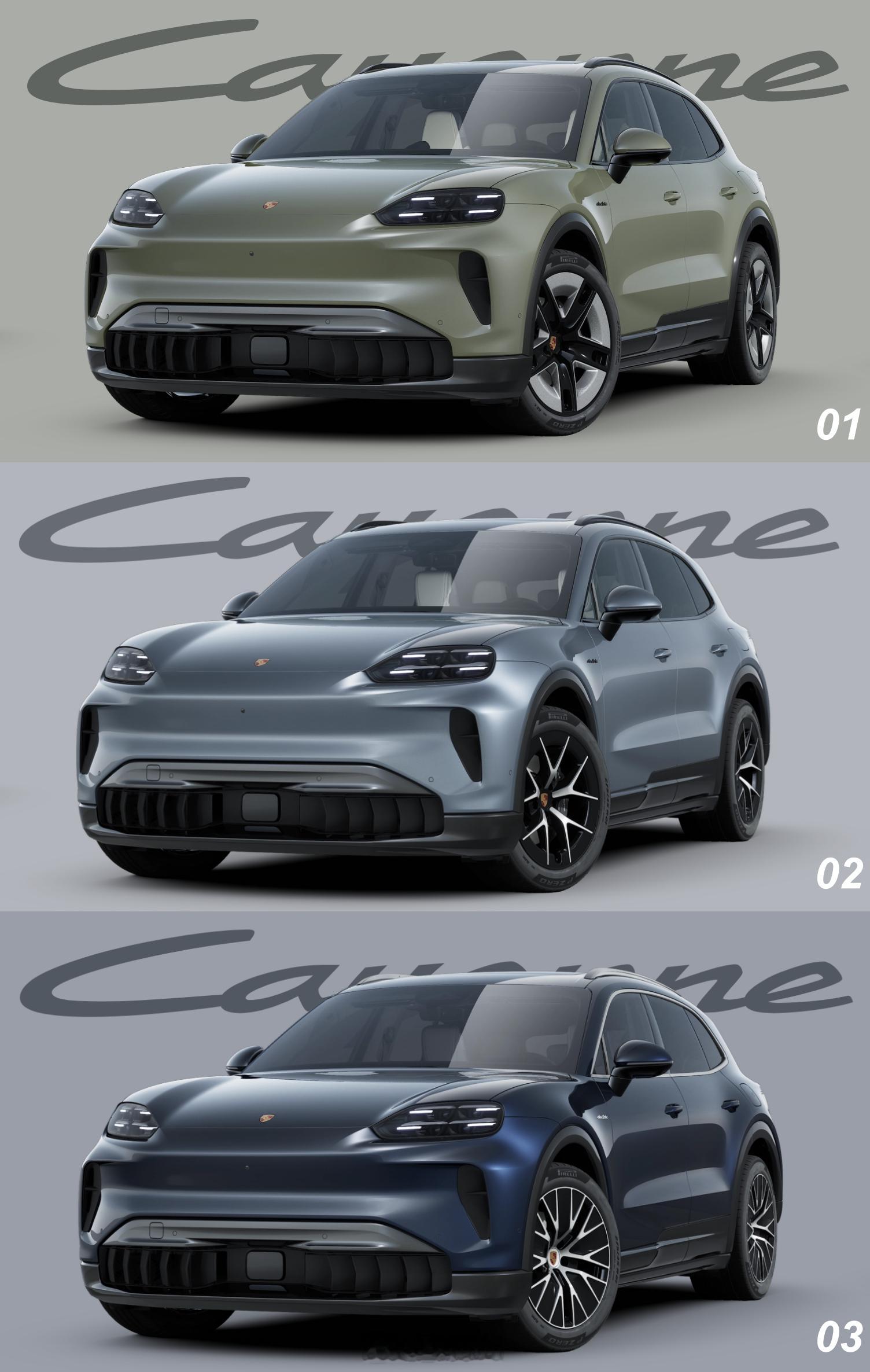 保时捷保时捷卡宴纯电版官方推荐选配 这是保时捷官方推荐的卡宴纯电版外观颜色+轮毂造型,大家觉得几号方案最好看