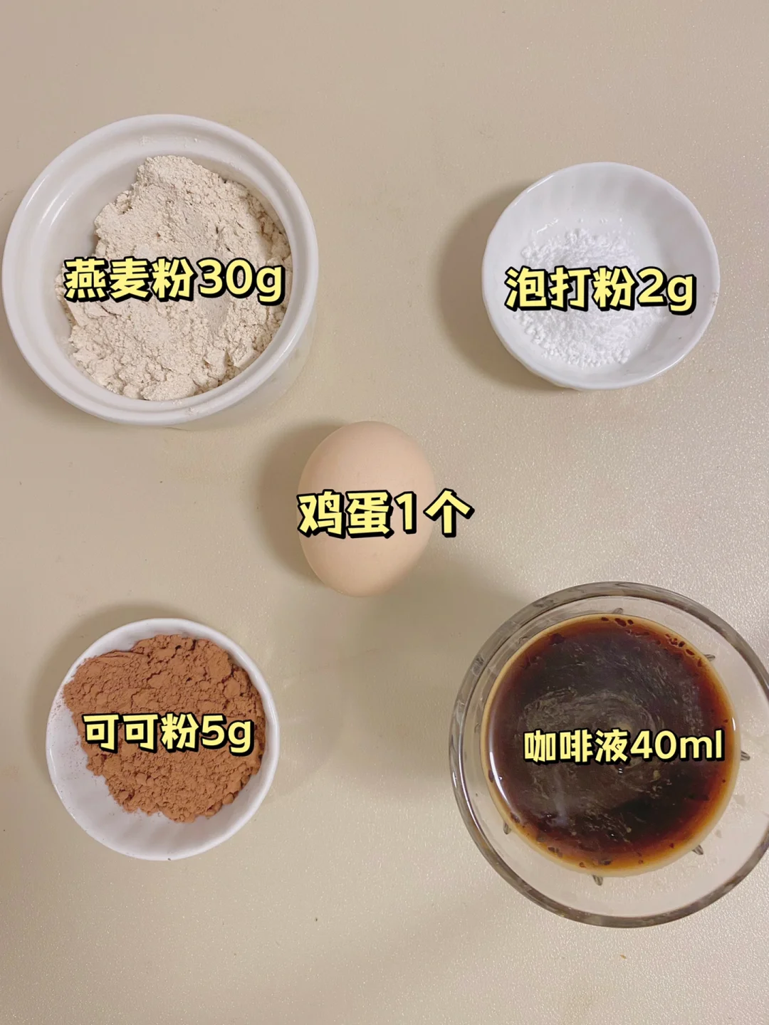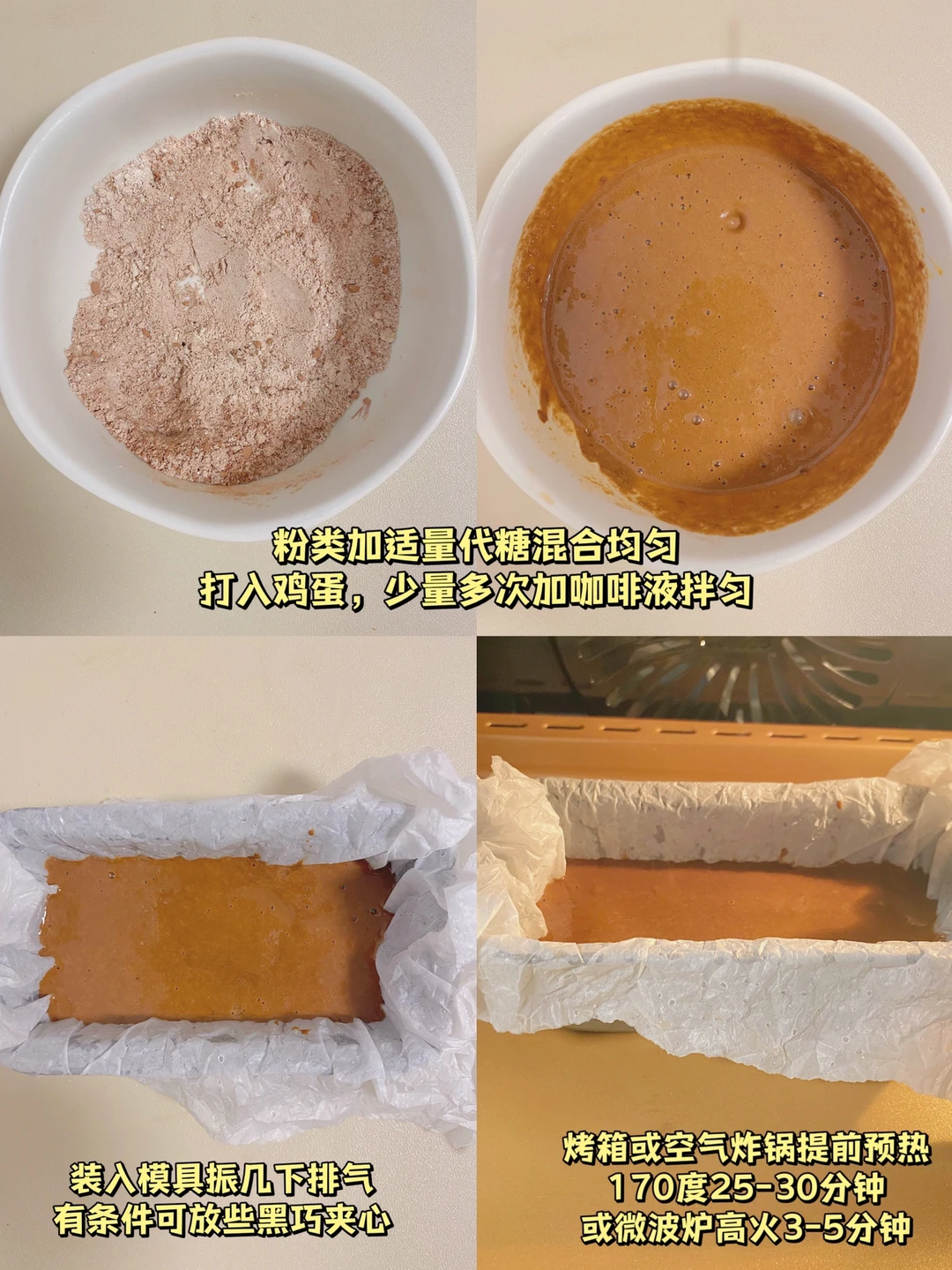 👩‍🍳咖啡脑袋在哪🙋‍♂️黑咖➕可可粉的组合,真的上头‼️做成无糖油无面粉的布朗尼,还能防暴食,搅搅ok~ 💕36卡/块|烤箱/空气炸锅/微波炉都🉑️ 🌈减脂、健身、生酮、巧克力控、咖啡控、布朗尼爱好者都给我去做~ . 🍃食材(216卡-5寸👉附热量表): 燕麦粉30g(🉑️换椰子粉、杏仁粉等) 可可粉5g 黑咖啡液40ml 鸡蛋1个 泡打粉2g 🌈代糖的量自己✋~不吃鸡蛋的可换成5g亚麻籽粉或奇亚籽➕30ml水 . 📖简单步骤一看就会,直接翻图6⃣️ . 食材简单,美味不简单‼️ 做早餐或者嘴馋的时候来一块,提高代谢还抗饿‼️一份一人食刚刚好‼️ 🌈姐妹们都要多吃不胖!