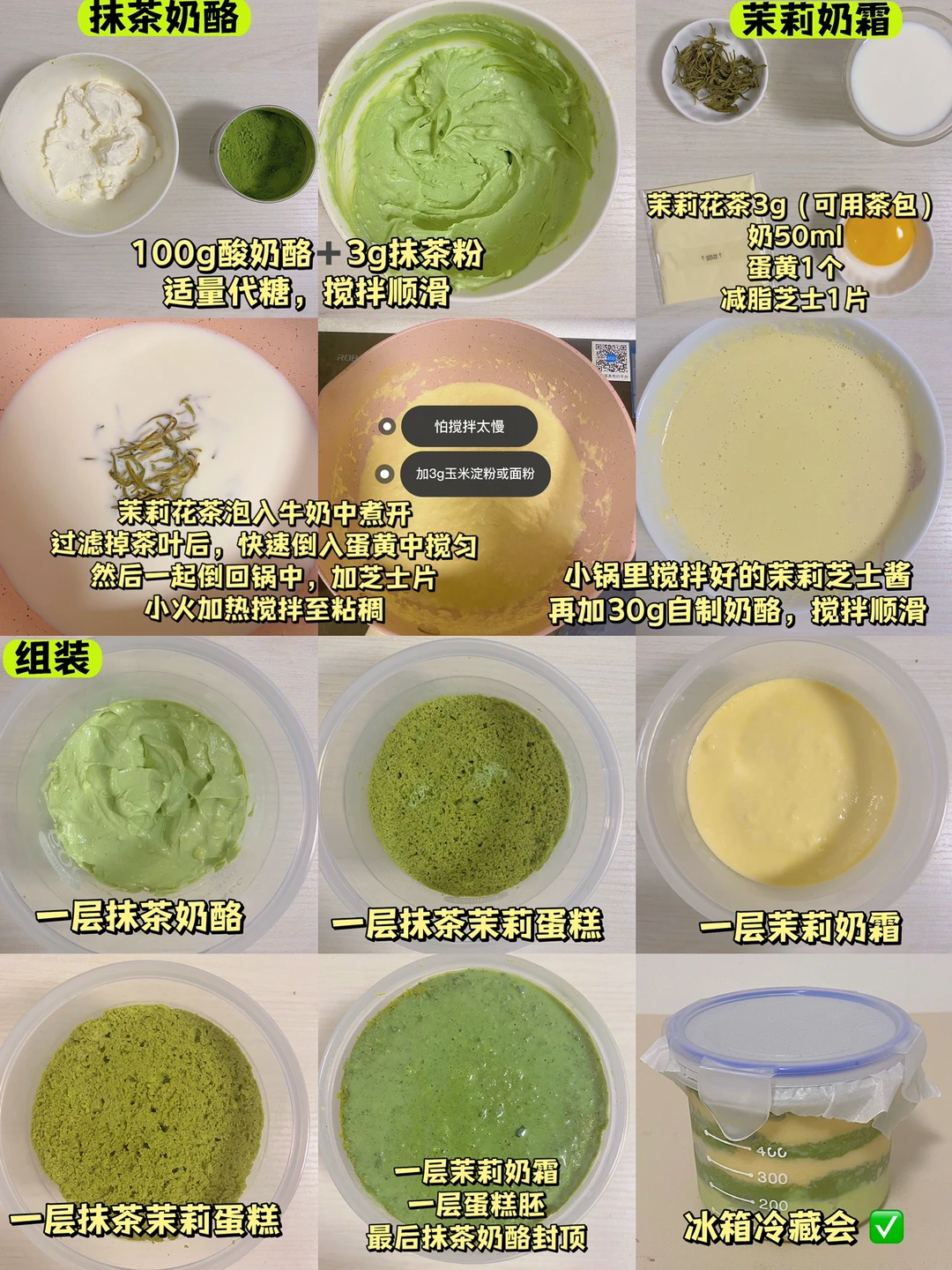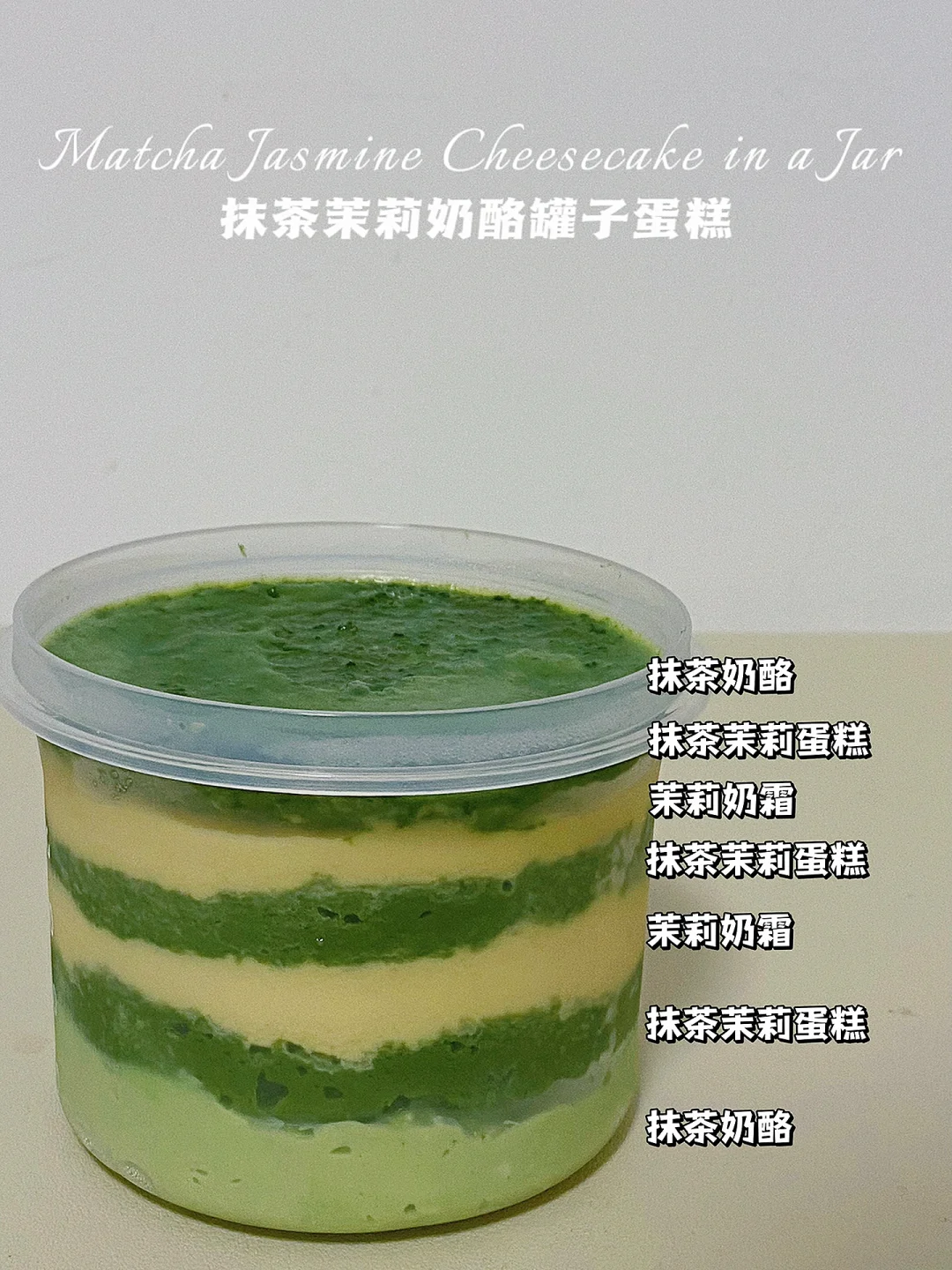 👩🍳咱就是说,快手免烤的罐子蛋糕,必须一周一个‼️还是无糖油无面粉的‼️先来个【抹茶茉莉奶酪罐子】,真的很清新‼️