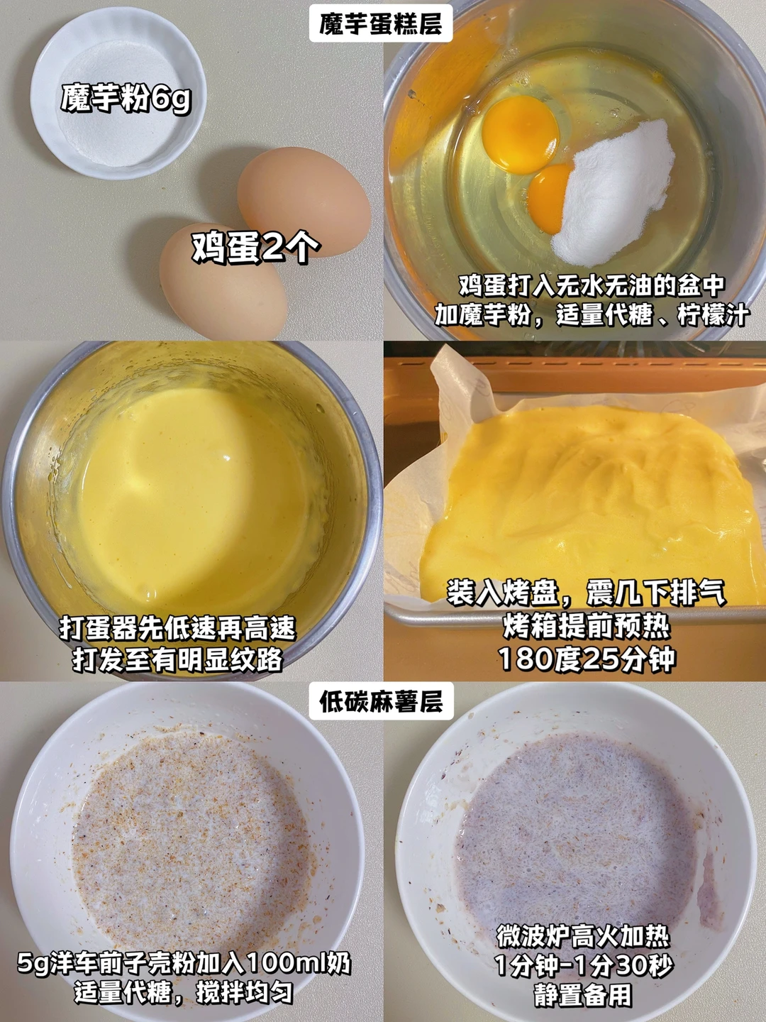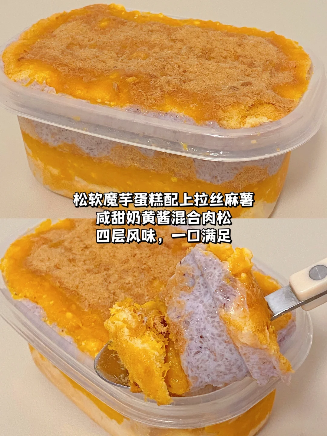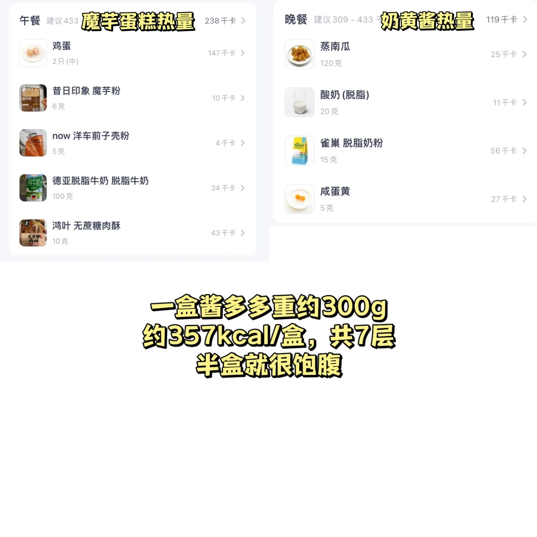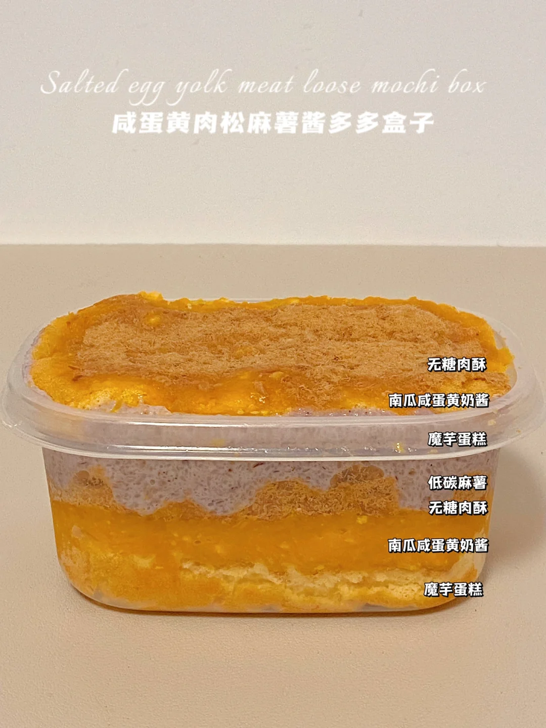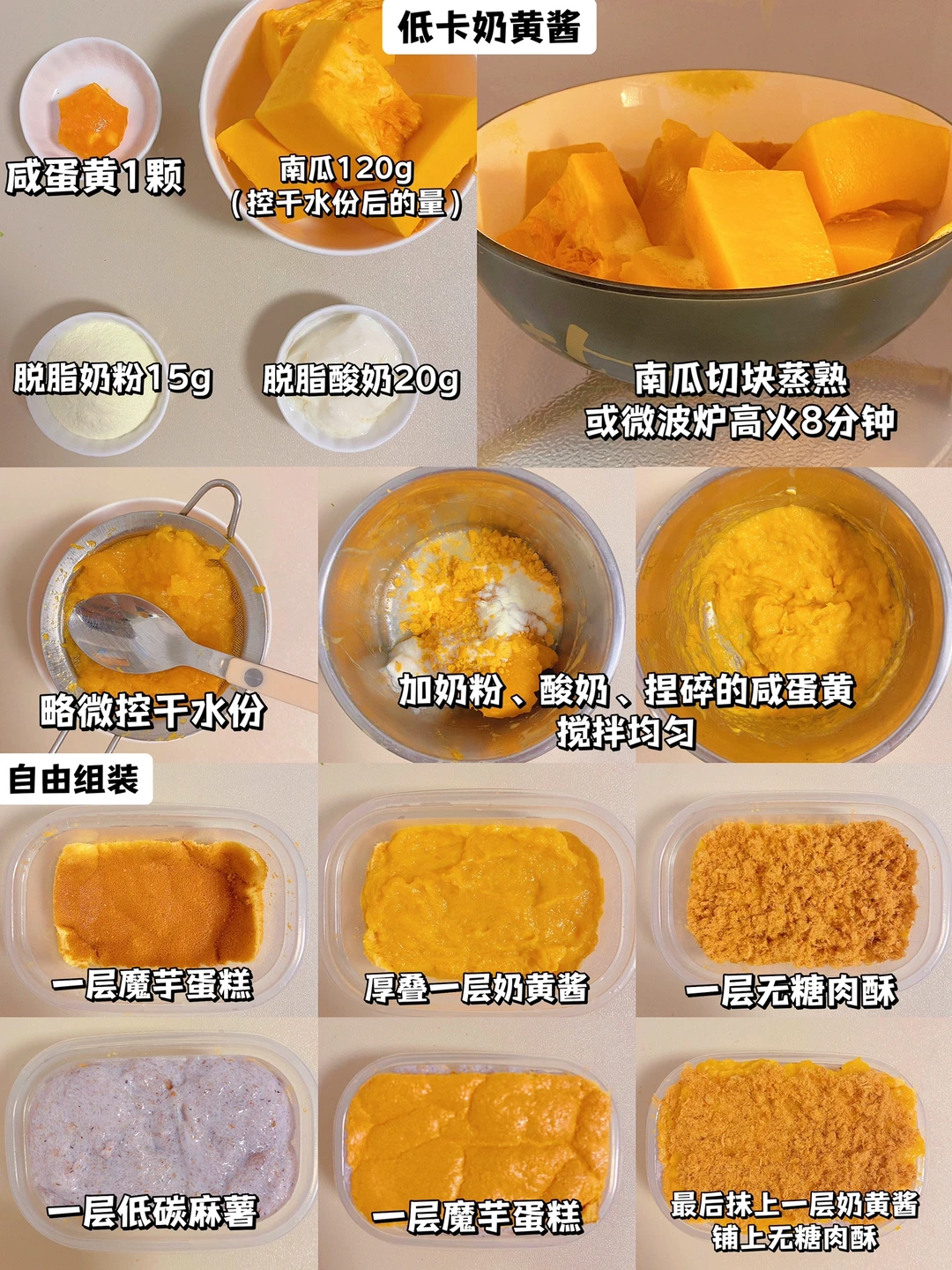 👩‍🍳爱吃酱多多的宝看过来👀了‼️肉松麻薯酱多多,无糖油无面粉,终极低卡版,🐴住了‼️ 💕一盒重约300g(357kcal) 🌈适合减脂、健身、生酮、咸蛋黄控、糯唧唧脑袋、酱多多脑袋可以冲! . 🍃食材(357卡/盒-300g👉附热量表): 【魔芋蛋糕】(157卡/份) 鸡蛋2个 魔芋粉6g . 【低碳麻薯】(38卡/份) 洋车前子壳粉5g 脱脂奶100ml . 【咸蛋黄南瓜奶酱】(119卡/份) 南瓜120g|咸蛋黄1个 酸奶20g|脱脂奶粉15g 🌈代糖、无糖肉酥适量~ . 📖简单步骤一看就会,直接翻图6⃣️、7⃣️ . 食材简单,美味不简单‼ 低卡饱腹,冷藏风味更佳,一口糯唧唧,配上奶黄酱和肉松,层次超丰富‼️ 🌈姐妹们都要多吃不胖‼️
