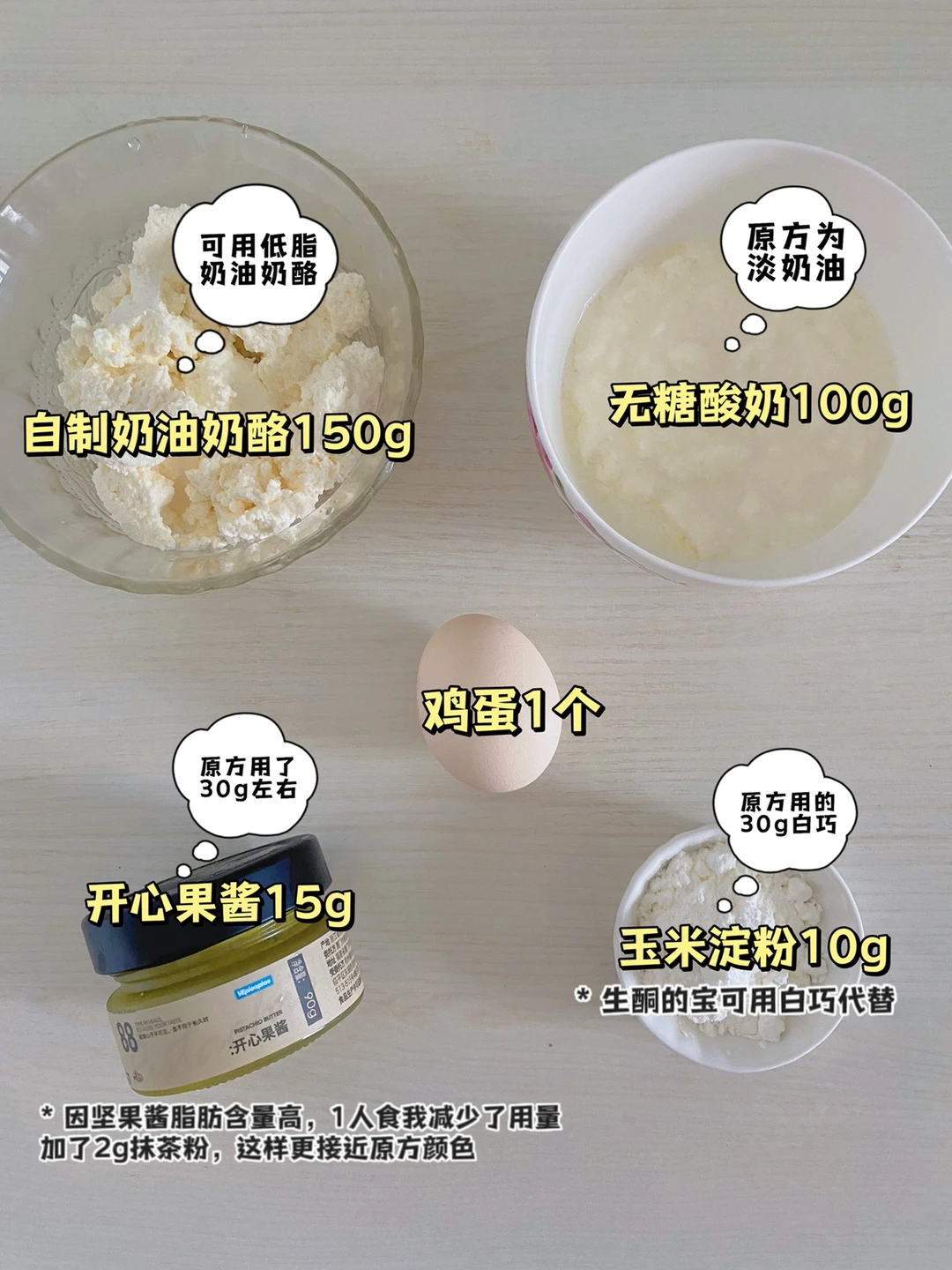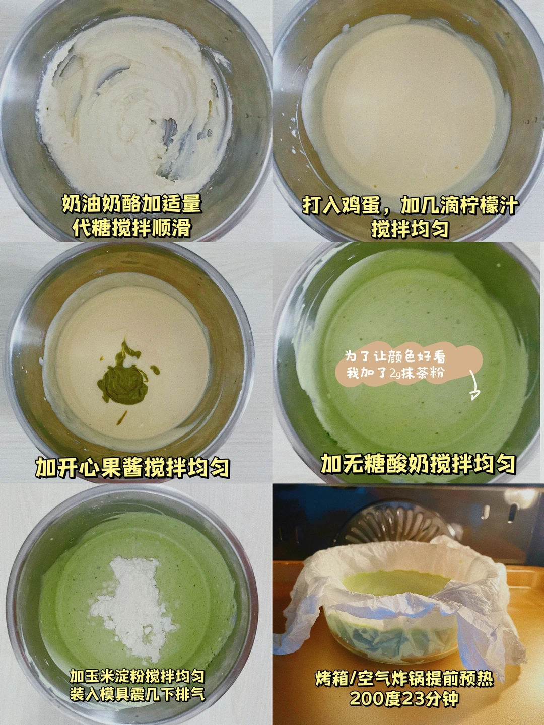 👩‍🍳日本名师配方㊙️开心果巴斯克芝士蛋糕‼️真巴斯克天花板‼️减脂改良版,无糖油无奶油,口感一样nice,吃了真的会开心🥳 💕 59卡/块|烤箱/空气炸锅都🉑️ 🌈适合减脂、健身、乳酪控、抹茶控、开心果脑袋闭眼入‼️ . 🍃食材(357卡-5寸👉附热量表): 自制奶油奶酪150g 浓稠酸奶100g(原方为淡奶油) 鸡蛋1个 开心果酱15g 玉米淀粉10g(原方为白巧克力30g) 🌈代糖的量自己✋~ . 🍀【抹茶奶酱】(37卡/份) 抹茶粉2g|酸奶酪(脱乳清)50g 南瓜籽仁适量 . 📖简单步骤一看就会,直接翻图7⃣️ . 食材简单,美味不简单‼️ 冷藏风味更佳,开心果巴斯克表面加坚果碎和奶酱,真的绝,一整个香迷糊了‼️ 🌈姐妹们都要多吃不胖‼️