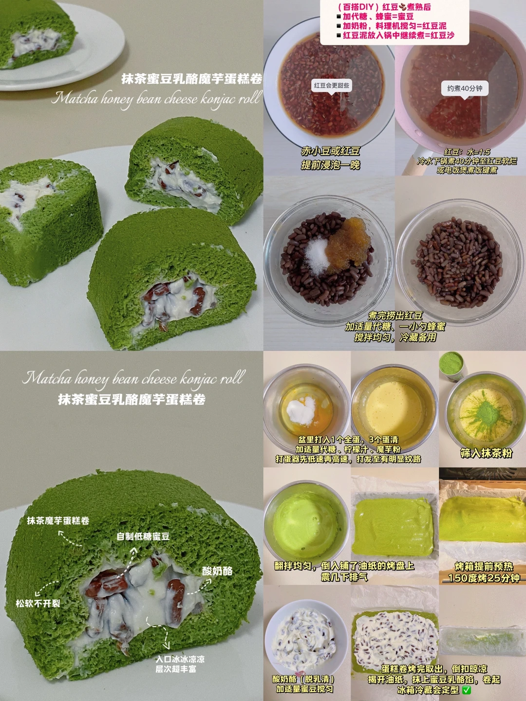 🍰抹茶蜜豆乳酪魔芋卷(277卡/ 9寸)