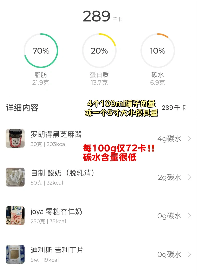 👩‍🍳姐妹们,天开始热了呀,低卡奶冻(布丁)🍮整起来啊‼️先来个黑芝麻的,ins收藏了很久的日本一家名店的配方,安排上了~ 💕72卡/100g|食材你都有 🌈适合减脂、健身、生酮、黑芝麻控、奶冻布丁爱好者闭眼入‼️ . 🍃食材(289卡-4个100ml👉附热量表): 无糖黑芝麻酱30g 奶油奶酪50g 牛奶250ml 吉利丁片1片 🌈代糖的量自己✋(原方30g);原方是吉利丁粉5g(我没有,用的吉利丁片) . 📖简单步骤一看就会,直接翻图8⃣️ 🌈表面淋点黑芝麻酱,别有风味~浓郁丝滑,像奶豆腐 . 食材简单,美味不简单‼️ 低卡养颜养发下午茶,好吃又解馋‼️(以上配比能做个4个100ml罐子的奶冻哦~) 🌈 姐妹们都要多吃不胖哟‼ ️