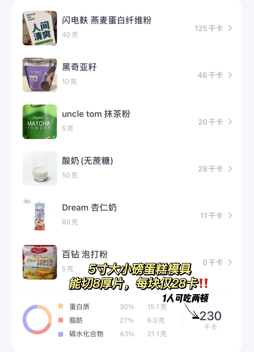 🍃食材(230卡/份-5寸模👉附热量表):