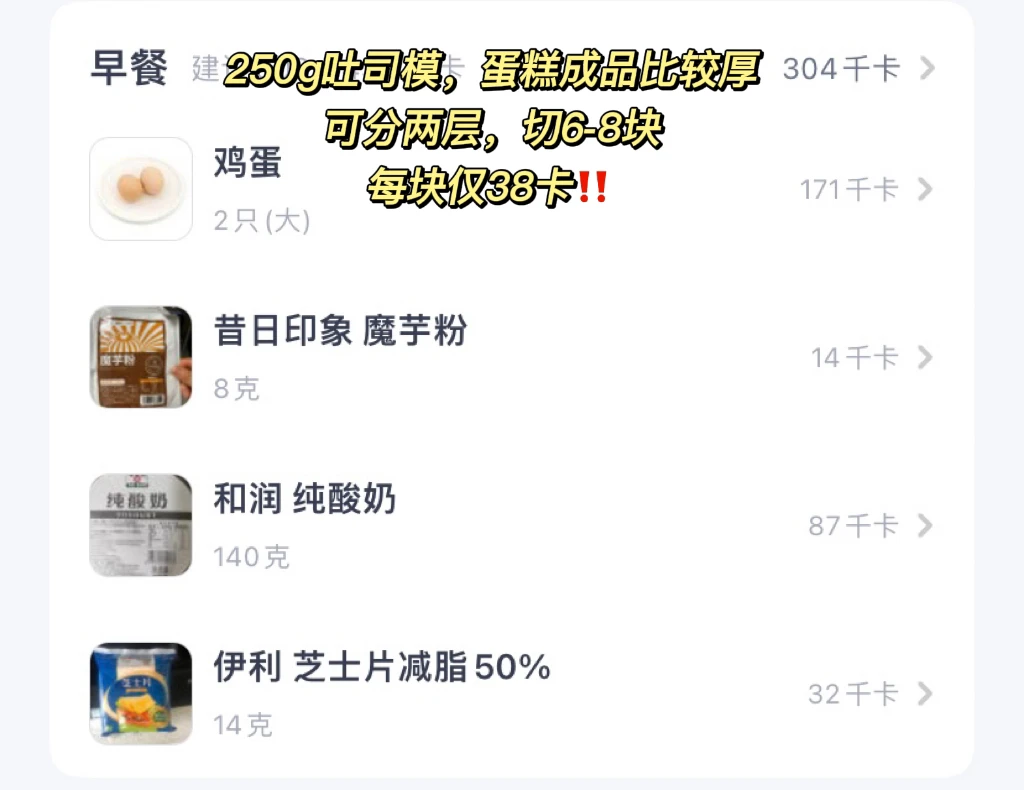 👩‍🍳 爱吃奶酪芝士的宝看过来,芝士味的古早乳酪蛋糕,无糖油无面粉,奶fufu,duang~duang的‼️ 💕38卡/块|烤箱/空气炸锅/蒸锅都🉑️ 🌈适合减脂、健身、生酮、芝士控、乳酪蛋糕爱好者整起来‼️ . 🍃食材(304卡-250g吐司模👉附热量表): 大号鸡蛋2个 酸奶酪120g(🉑️换浓稠酸奶) 魔芋粉8g 减脂芝士一片 🌈代糖的量自己✋;我的鸡蛋比较大,用了2个;小号鸡蛋可用3-4个,不想摄入太多脂肪,可去掉两个蛋黄 . 📖简单步骤一看就会,直接翻图7⃣️ 🌈我是吐司模,蛋糕会有些厚,就切了两层,差不多6-8块的样子 . 食材简单,美味不简单‼️ 做下午茶或者早餐都超棒‼️低卡饱腹,推荐热吃,芝士会流心,冷藏可储存2-3天,吃时微波炉加热10-20s‼️【可可味古早蛋糕】👀主页 🌈姐妹们越吃越瘦‼️