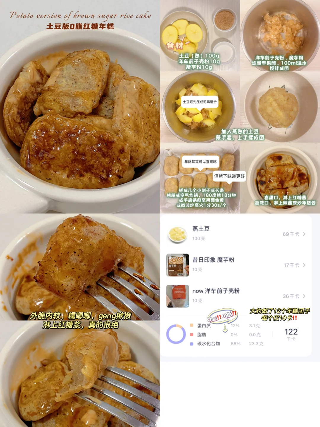 👩🍳 【自制年糕合集】糯叽叽脑袋都给我去做‼️ 💗四种做法,咸甜都有,总有一款适合你,食材简单,每款都不踩雷‼️ 🌈减脂、健身、生酮、懒人、年糕控闭眼入~ . 🍡爆浆芝士米纸年糕(163卡/盘) 🍡山药版脆皮烤年糕(100卡/根) 🍡无油低脂韩式辣炒年糕(81卡/盘) 🍡土豆版0脂红糖年糕(122卡/盘) . 📖简单步骤一看就会,每款都有对应笔记📒 . 食材简单,美味不简单‼️ 爱吃年糕的看这一篇就够,自制版、懒人版,山药版、土豆版,应有尽有,任君挑选‼️ 🌈仙女们越吃越瘦‼️