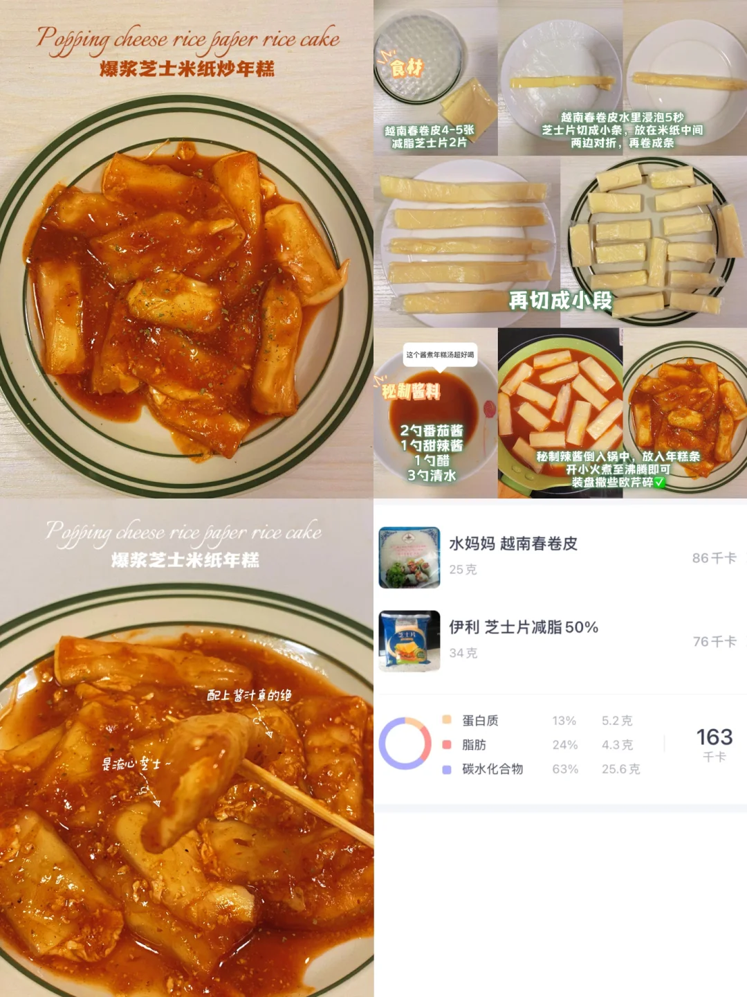 春卷皮做年糕⁉️爆浆芝士年糕‼️一盘才163卡