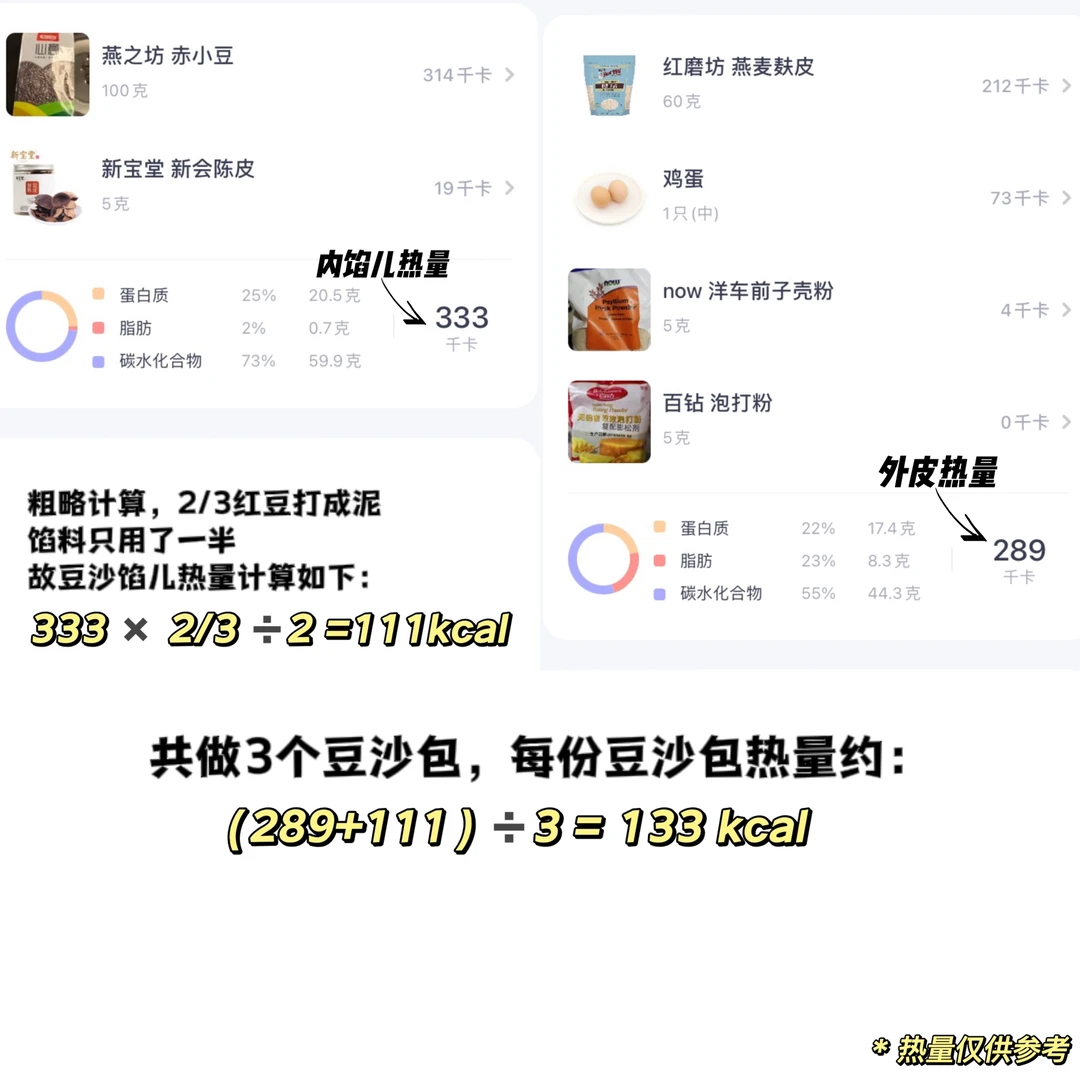 👩‍🍳冬天谁能拒绝软糯香甜的豆沙包啊‼无糖油,不发酵不揉面的懒人做法🐴住‼️(㊙️附无糖豆沙馅,一馅两吃,既做馅儿又能做广式糖水) 💕约133卡/个(含馅)|烤箱/空气炸锅都🉑 🌈推荐做给家里的长辈、小孩吃,燕麦面包胚,低升糖,也适合减脂、健身、豆沙、面包糕点爱好者入‼ . 🍃食材(289卡-3个👉附热量表): 燕麦粉60g 泡打粉5g|鸡蛋1个 洋车前子壳粉5g(🉑️不放) 🌈喜颗粒感的,燕麦粉中掺些燕麦;洋车粉增加软糯的口感,放凉也不会硬,不放也ok . 🍀【陈皮红豆沙馅】 十年老陈皮1片 100g赤小豆(红豆也🉑️) 🌈上述的量一半做馅儿,一半做糖水【陈皮红豆沙】,只做馅儿红豆量减半;内馅也可按自己喜好,黑芝麻、奶酪等都🉑️ . 📖简单步骤一看就会,直接翻图6⃣️7⃣️ . 食材简单,美味不简单‼ 可做早餐或每餐的主食,外脆内软,一口甜汤一口豆沙包,营养饱腹又美味‼ 🌈秋冬养阴,就很适合喝些陈皮茶,新宝堂的十年新会陈皮,广东老字号,规格多样,我买的小罐方便携带,品质很nice‼️分享两款我常煮的陈皮茶组合,陈皮➕熟普(消脂解腻)或陈皮➕茯苓(祛湿)~ 💕感谢品牌爸爸赞助投喂