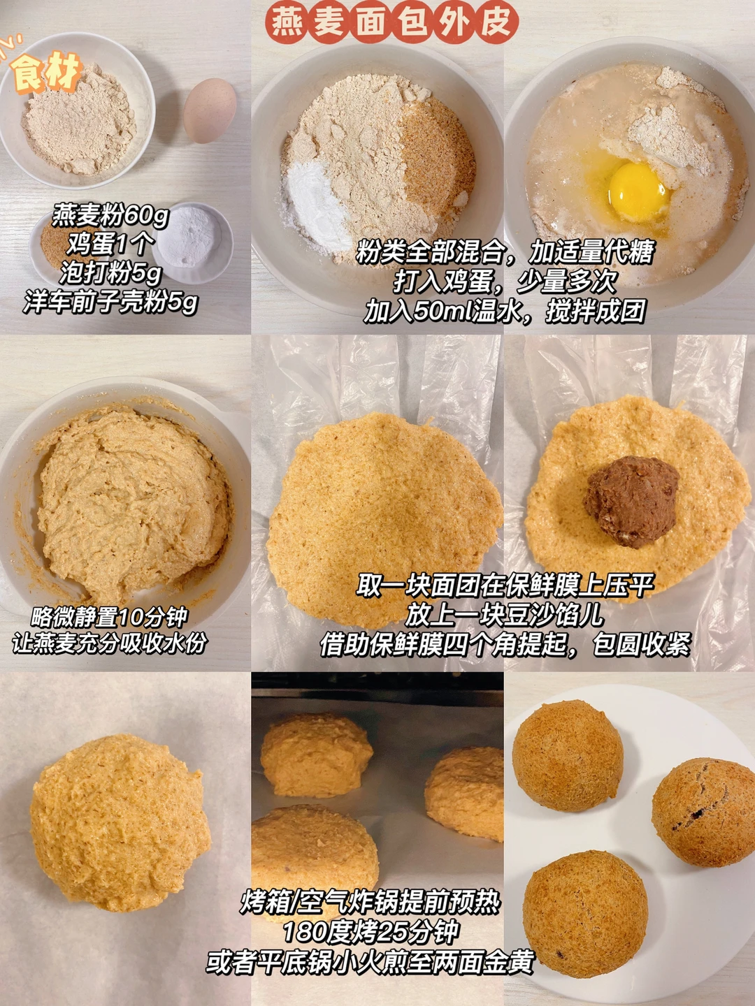 无糖油无面粉‼️燕麦豆沙包‼️不发酵不揉面