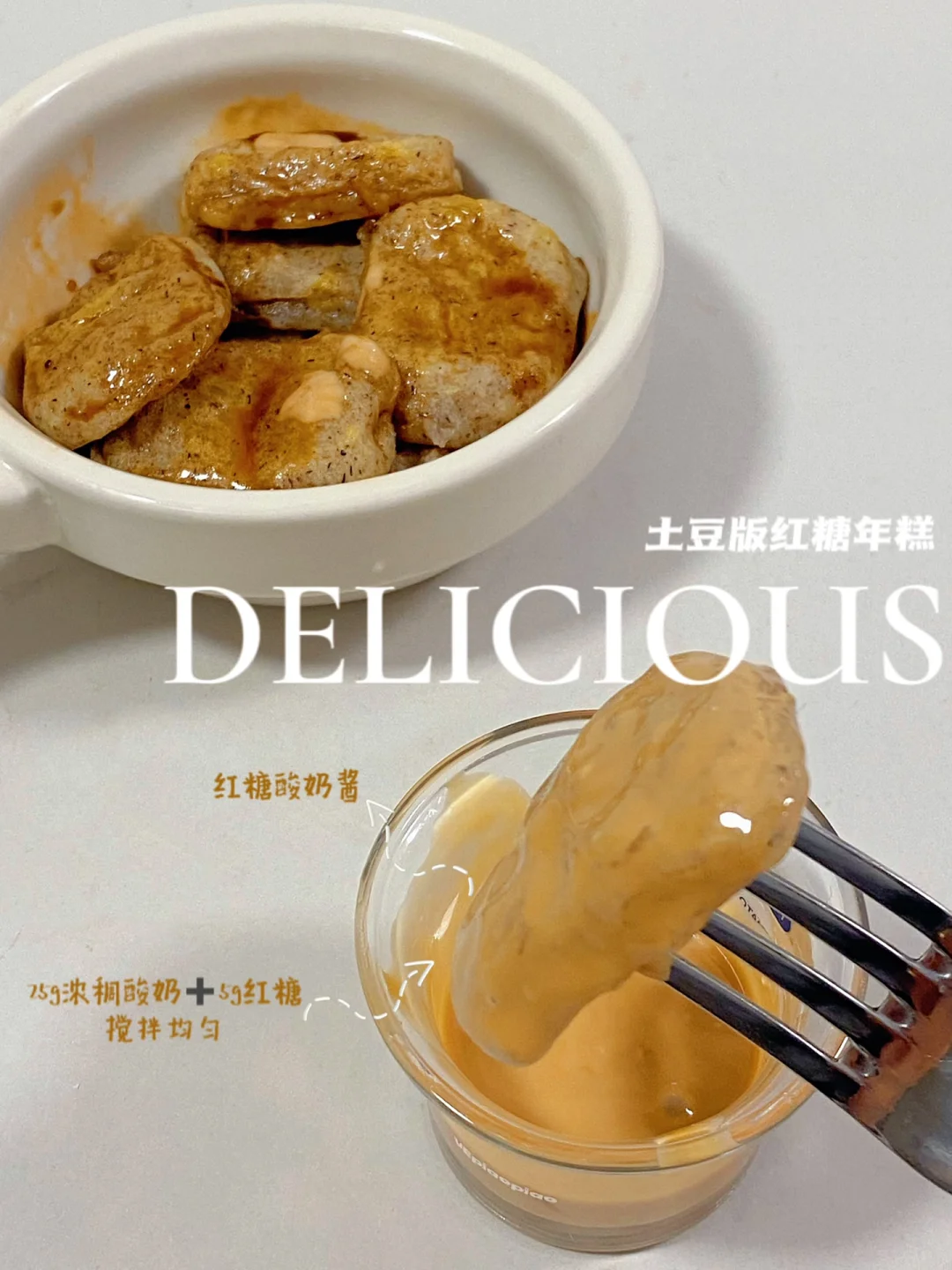 👩🍳山药版的年糕试过了,土豆版也试试呀,风味各不相同‼️这款无需糯米,连各种淀粉也不用,低脂低卡,3种食材就ok‼️