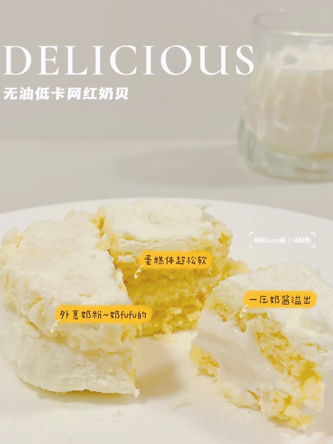 👩🍳姐妹们,网上超🔥的奶贝,复刻了复刻了‼️还是无油低卡版,真真真的巨好吃,一整个奶住,3分钟就ok,宿舍党友好‼️(㊙️内赠几款低卡内馅做法)