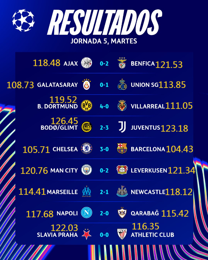 本菲卡球员跑动距离(121.53KM):13.10 - 巴雷内切亚12.96 - 奥斯里奥斯12.41 - 巴雷罗12.08 - 帕夫里迪斯本菲卡球员冲刺跑距离(1626M):370 - 里奥斯258 - 德蒂奇249 - 达尔本菲卡球员高强度跑距离(6517M)891 - 巴雷罗831 - 奥斯里奥斯793 - 里奥斯本菲卡球员最高时速 KM/H32.29 - 里奥斯曼城球员跑动距离:12.93 - 冈萨雷斯12.24 - 赖因德斯11.06 - 阿克曼城球员冲刺跑距离(1819M):253 - 胡萨诺夫(65’)245 - 萨维奥236 - 马尔穆什(65’)曼城球员高强度跑距离(5859M)734 - 冈萨雷斯719 - 萨维奥676 - 赖因德斯曼城球员最高时速 KM/H33.28 - 努里勒沃库森球员跑动距离:12.85 - 马扎12.25 - 加西亚12.09 - 希克勒沃库森球员冲刺跑距离(1865M):424 - 科法内(83’)316 - 格里马尔多296 - 波库勒沃库森球员高强度跑距离(5525M)692 - 格里马尔多649 - 蒂尔曼640 - 马扎勒沃库森球员最高时速 KM/H34.28 - 波库多特蒙德球员跑动距离:12.82 - 斯文森11.50 - 安塞尔米诺11.02 - 库托多特蒙德球员冲刺跑距离(2194M):383 - 阿德耶米241 - 库托237 - 斯文森多特蒙德球员高强度跑距离(6974M)925 - 斯文森921 - 库托716 - 阿德耶米多特蒙德球员最高时速 KM/H39.6 - 阿德耶米(难以置信,可能需要多方证实)那不勒斯球员跑动距离:12.00 - 麦克托米奈11.51 - 洛博特卡11.20 - 迪洛伦佐那不勒斯球员冲刺跑距离(2407M):361 - 内雷斯(90’)317 - 诺·阿朗(75’)308 - 霍伊伦(75’)那不勒斯球员高强度跑距离(6807M)875 - 迪洛伦佐839 - 奥利维拉706 - 内雷斯(90’)那不勒斯球员最高时速 KM/H34.3 - 霍伊伦马赛球员跑动距离:11.81 - 维尔马伦11.07 - 派尚11.00 - 霍伊别尔马赛球员冲刺跑距离(3040M):407 - 派尚369 - 维阿366 - 奥巴梅扬马赛球员高强度跑距离(7235M)968 - 派尚868 - 霍伊别尔703 - 奥巴梅扬马赛球员最高时速 KM/H33.79 - 奥巴梅扬纽卡斯尔联球员跑动距离:12.50 - 吉马良斯12.32 - 托纳利11.43 - 巴恩斯纽卡斯尔联球员冲刺跑距离(3683M):504 - 戈登(76’)407 - 利夫拉门托(64’)398 - 威洛克(76’)纽卡斯尔联球员高强度跑距离(8159M)1013 - 巴恩斯909 - 托纳利752 - 威洛克(76’)纽卡斯尔联球员最高时速 KM/H34.69 - 埃兰加切尔西球员跑动距离:10.87 - 恩佐9.73 - 库库雷利亚9.47 - 查洛巴切尔西球员冲刺跑距离(2134M):301 - 恩佐295 - 内托(78’)277 - 库库雷利亚切尔西球员高强度跑距离(6292M)840 - 恩佐664 - 内托(78’)574 - 福法纳切尔西球员最高时速 KM/H34.76 - 内托巴萨球员跑动距离:11.39 - 德容10.48 - 加西亚10.23 - 孔德巴萨球员冲刺跑距离(1986M):308 - 孔德210 - 巴尔德(82’)206 - 加西亚巴萨球员高强度跑距离(6015M)838 - 巴尔德(82’)663 - 孔德588 - 德容巴萨球员最高时速 KM/H32.99 - 孔德跑动距离曼城0比2勒沃库森切尔西3比0巴萨
