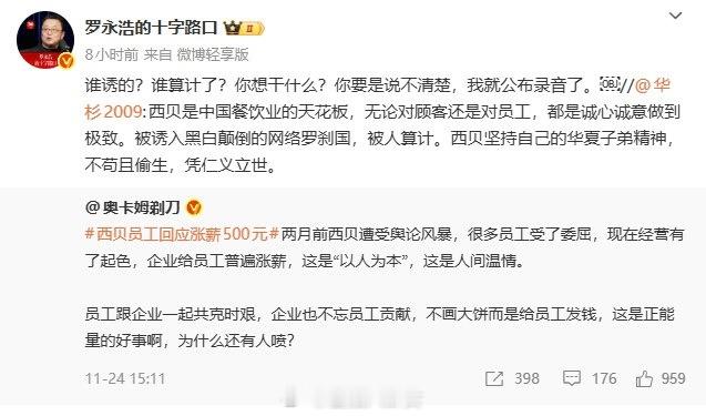 华与华老板称西贝被算计!罗永浩转发回怼:谁算计了?说不清楚就放录音了 罗永浩怒怼华与华创始人