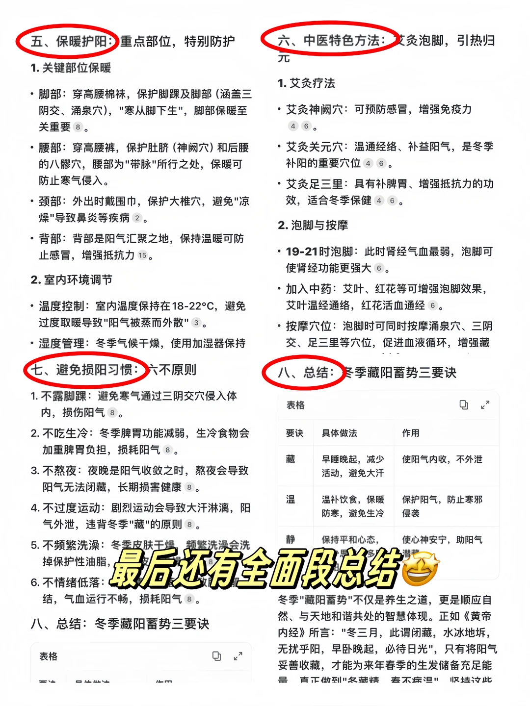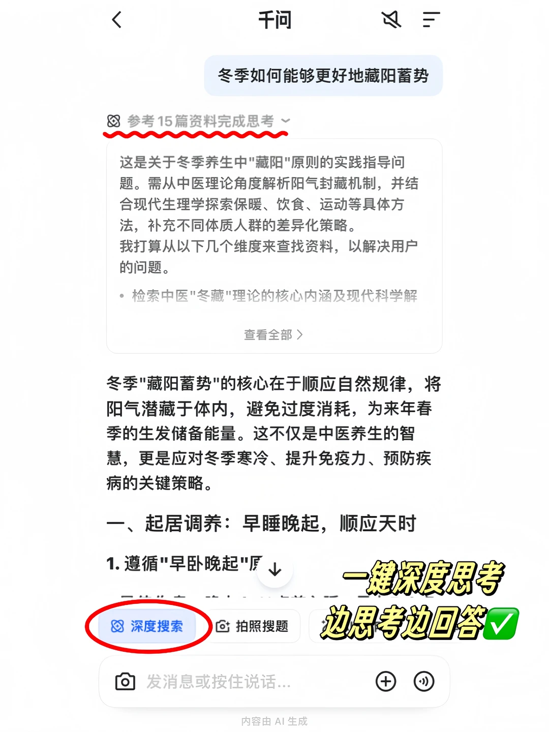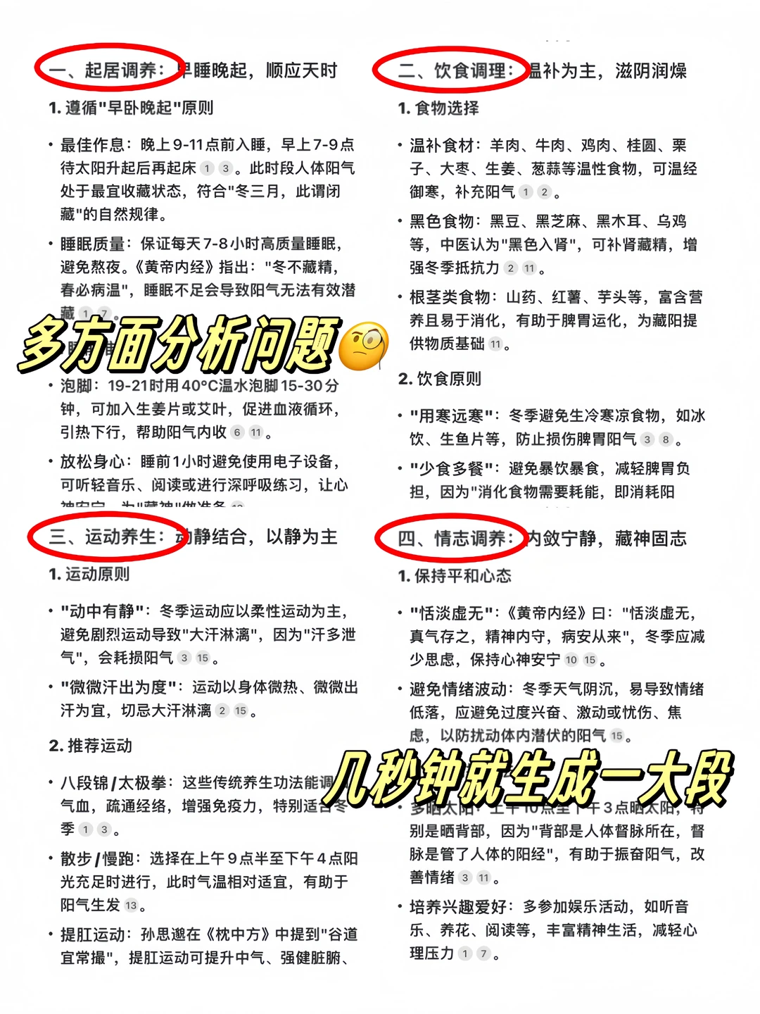 我在搜索冬季如何能够更好地藏阳蓄势时,它都能给予我不同方面的方法以及此方法实际的原理,并结合我提供的个人身体情况,给出适合自己的详细指导,并且还会提醒我哪些大众做法不适合我去做。