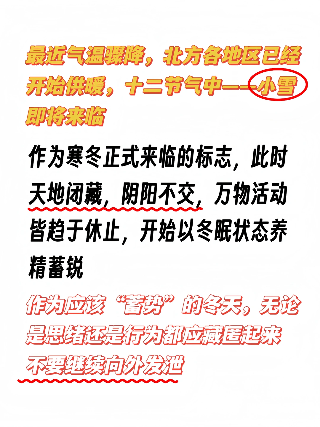 🌡🌡最近气温骤降,北方各地区已经开始供暖,十二节气中——小雪即将来临。作为寒冬正式来临的标志,此时天地闭藏,阴阳不交,万物活动皆趋于休止,开始以冬眠状态养精蓄锐。