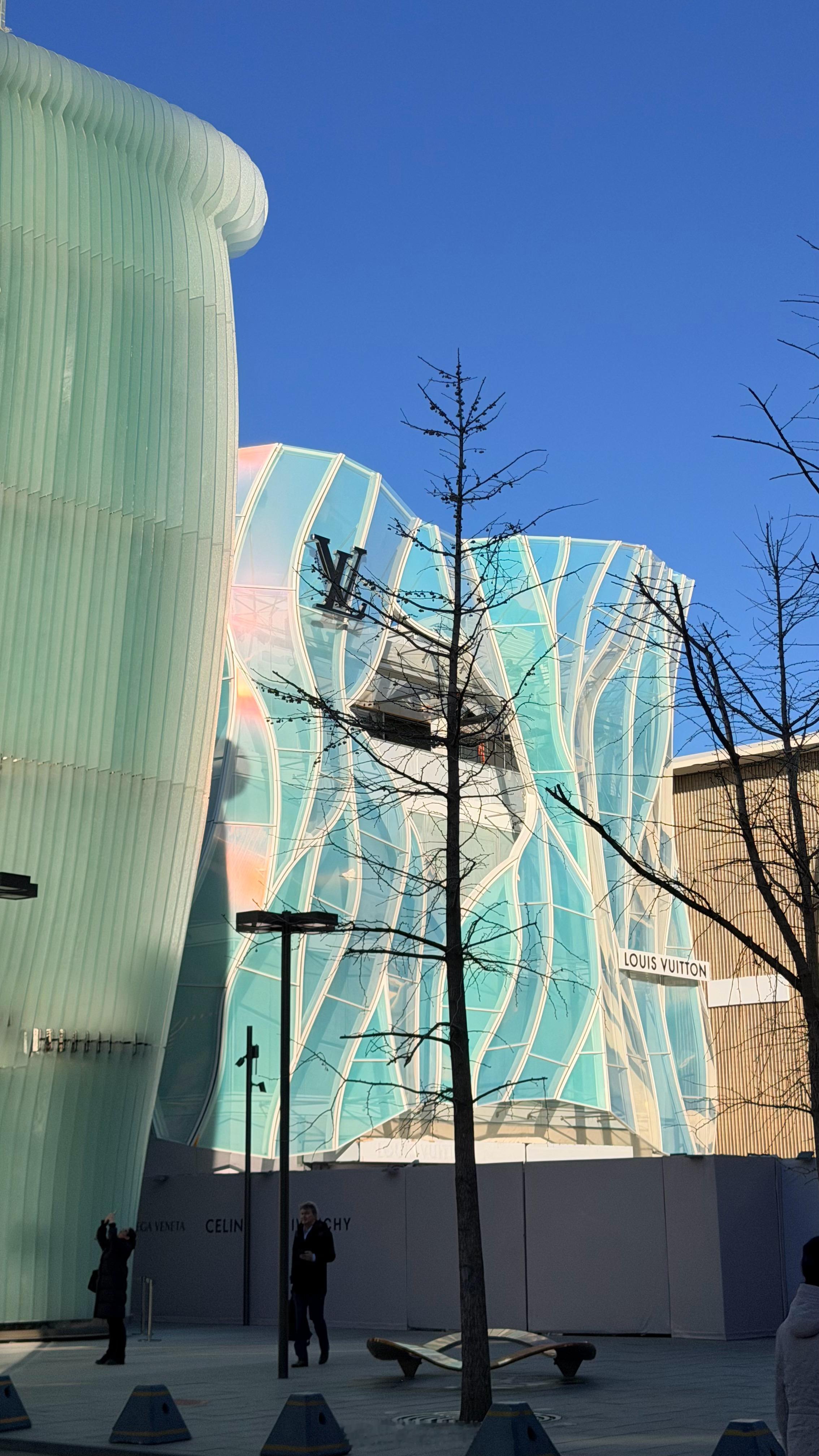 路过的时候拍了两张三里屯新LV大楼真的挺漂亮的尤其夕阳照在上面的时候,会多一抹橙