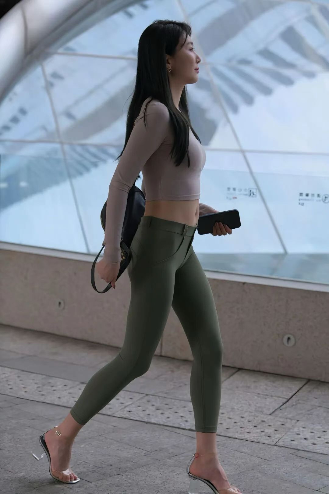 正常街拍穿搭,并无不良引导!绿衣美人行,步履生风姿。