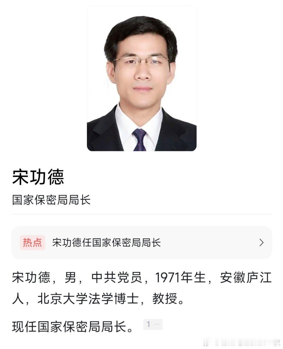 宋功德任国家保密局局长。热点现场