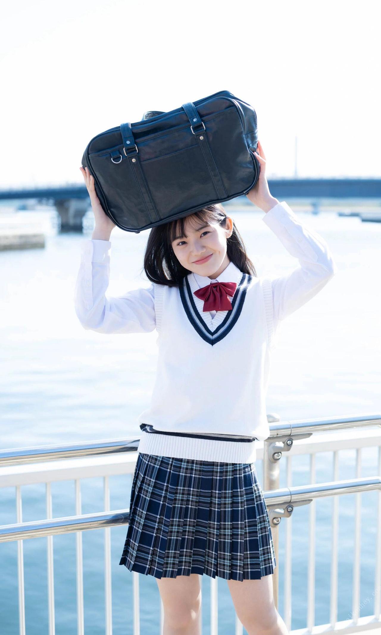 青春洋溢的校园少女,白色衬衫搭配黑色短裙,甜美可爱。