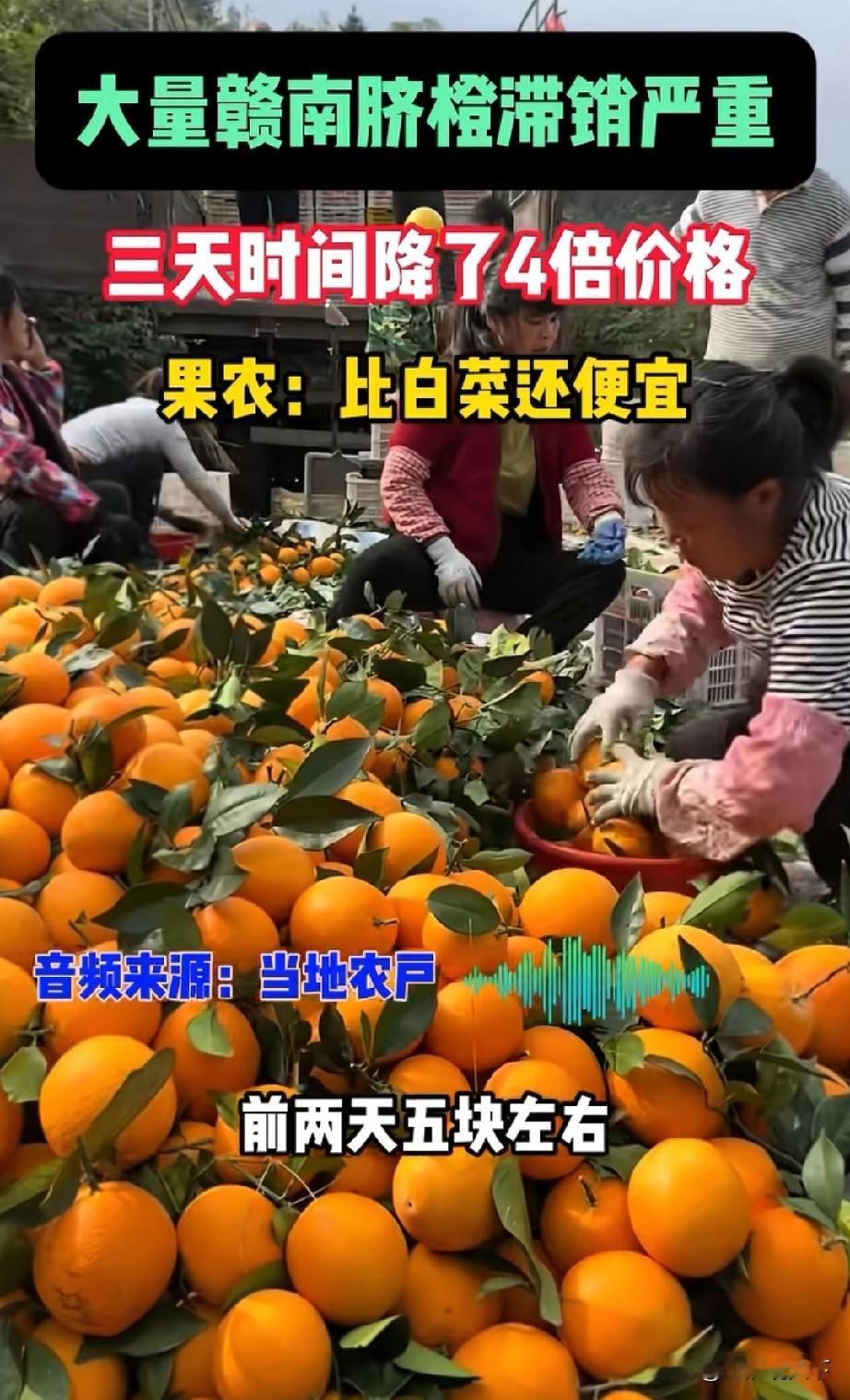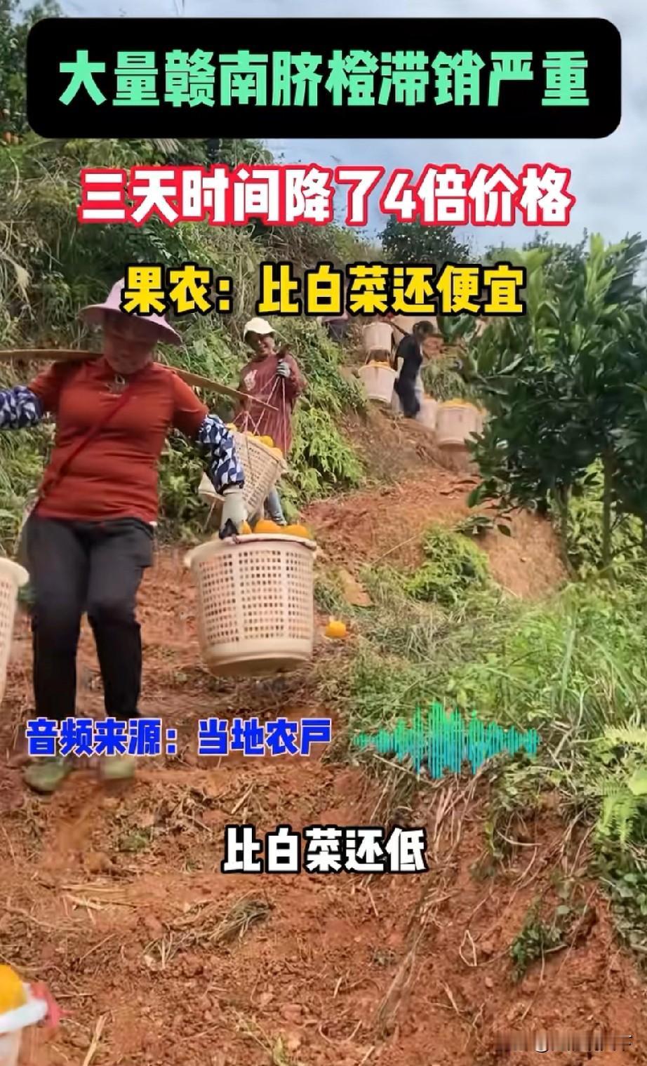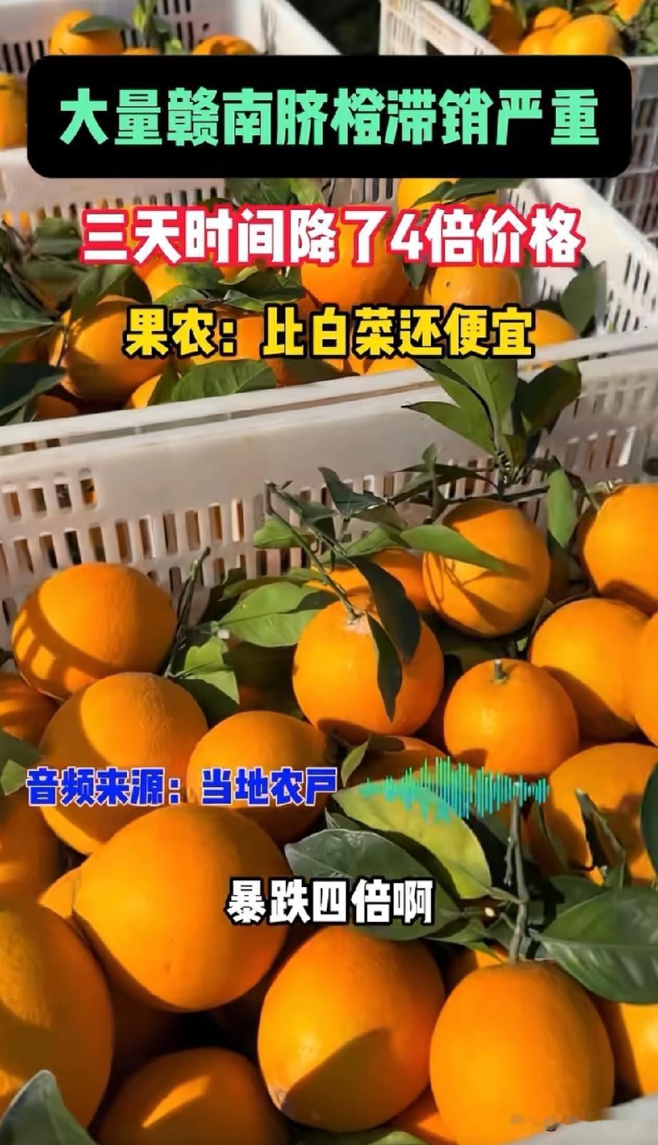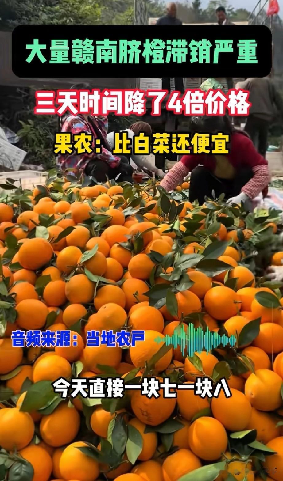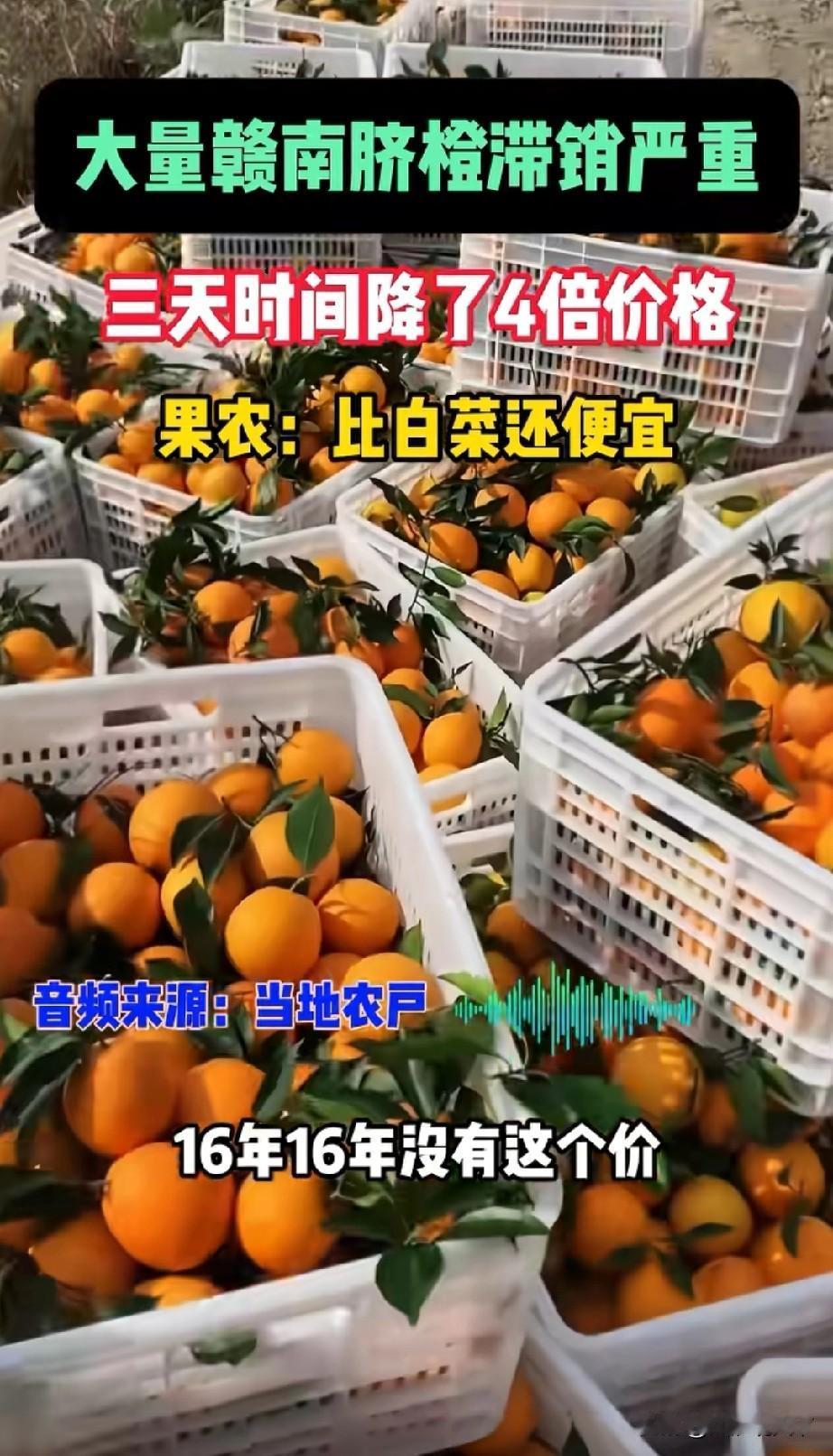 江西赣南脐橙遭遇销售寒冬,零售价堪比白菜价 最近几年,水果市场也是风云变幻,很多水果从高顶掉落地上,价格也是一跌再跌,比如榴莲,葡萄,果冻橙等,价格比起以前,便宜了一半的情况都有。 以江西省赣州市为主要原产地的赣南脐橙,今年也遇到了销售寒冬,价格一低再低,批发价从5元左右,降到1.7-1.8元,果农叫苦不迭,降幅达到4倍左右,更有果农表示,16年了没有出现过这种价格,比白菜还低。 笔者在某网购平台搜索,8.5斤的赣南脐橙,零售价只要18.5元,平均一斤价格只要2.1元,甚至没有小白菜贵,小白菜都卖到2.5-3.5元了。 赣南脐橙今年遭遇销售寒冬,价格一再降低,消费者也不像往年那样热情购买,不知道到底是怎么回事?赣南脐橙 脐橙 赣州脐橙产地 赣南甜橙 江西水果脐橙