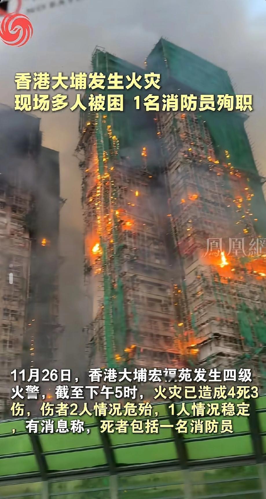 快讯快讯! 香港大埔宏福苑突然爆发四级大火! 已有有4人没能幸免于难,其中就包括那位牺牲的消防员。 真的让人心里揪得慌!香港大埔这场大火带走了4个人的生命,其中就有那位冲在最前面的消防英雄。这事儿发生在26号下午,当时火势很快就烧到了四级,现场浓烟滚滚,火舌一个劲儿地往天上窜。 消防员们根本顾不上自己的安危,直接冲进着火的楼里,跟时间抢人。可惜最后还是有4个人没能从火场里出来,包括那位勇敢的消防员。现在还有3个人受伤住院了,其中2个人的情况很不好,还在医院里抢救。 每次刷到这种新闻,心里都堵得慌。消防员拿自己的命护着我们,他们就是最勇敢的逆行者。这场火灾又给大家提了个醒:老小区的消防设备到底够不够用啊?咱们平时的安全意识是不是还差点意思? 真心想给所有冲在最前面的消防员鞠个躬!希望走的人能安息,受伤的人快点好起来。你身边有没有遇到过类似的安全隐患?评论区聊聊,咱们一起说说怎么能多注意点。