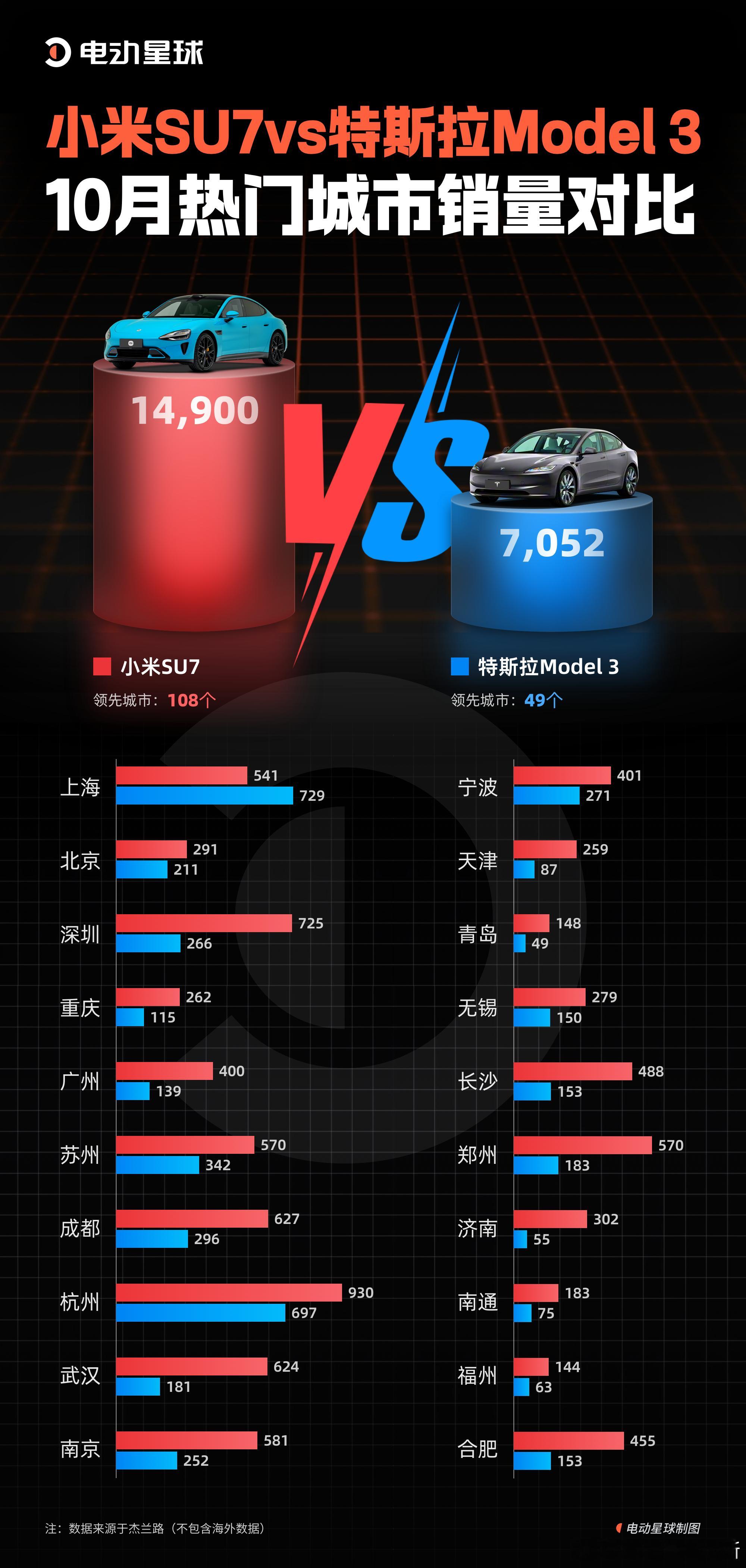 小米SU7和特斯拉Model3的10月销量差距,已经不是一个量级了