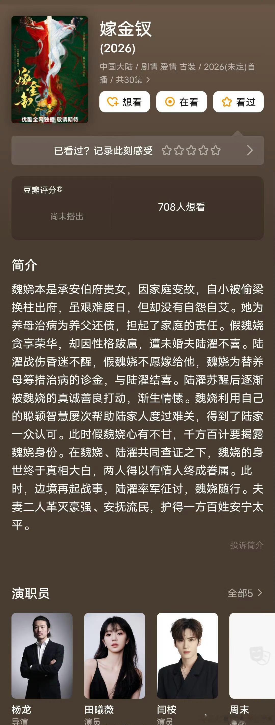 田曦薇《嫁金钗》明天单独官宣单宣大女主+卡点生日