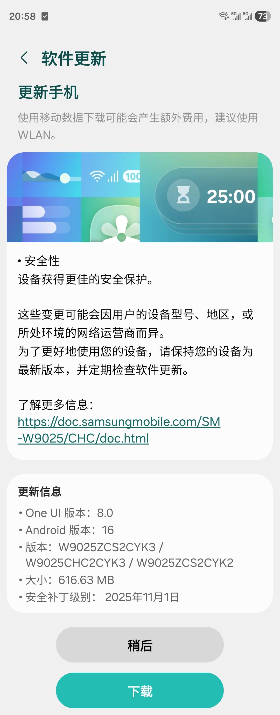 刚刚更新了w25的11月1日安全补丁更新,别的没感觉到有啥变化。
