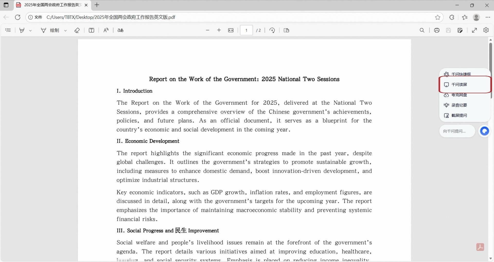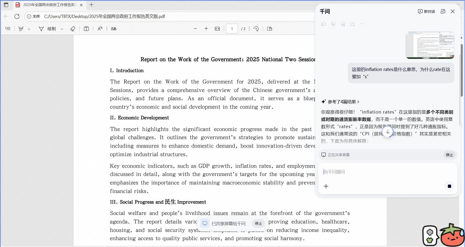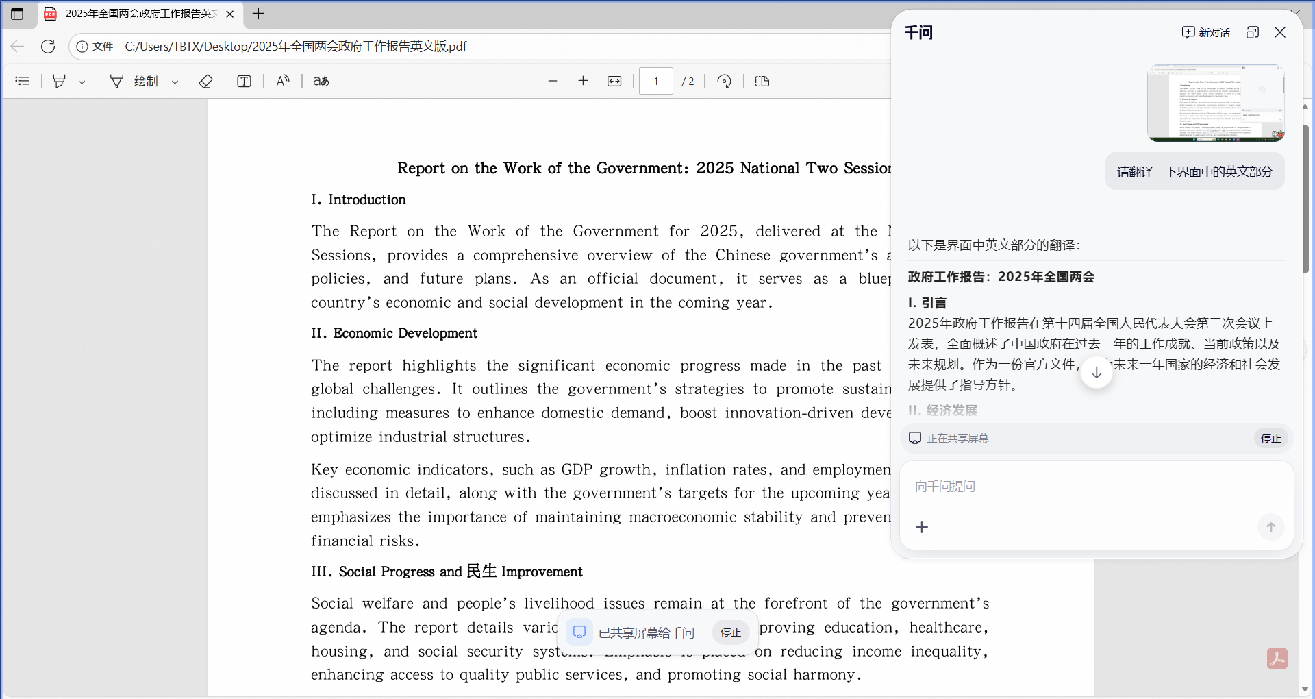 对标Chrome的夸克AI浏览器免费用之前用夸克网盘、AI搜索比较多,没想到最近新出的AI浏览器也很好用,居然可以不用切换应用和标签,就能随时问AI,直接共享屏幕,让千问AI读屏帮我翻译并整理一些报告的重点信息,遇到不懂的知识点随时提问,不需要复制、截图,一边看一边问,真的很方便!