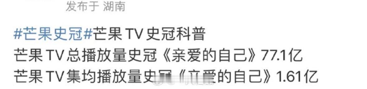 芒果总播放量史冠/集均播放量史冠都是刘诗诗的一番剧《亲爱的自己》