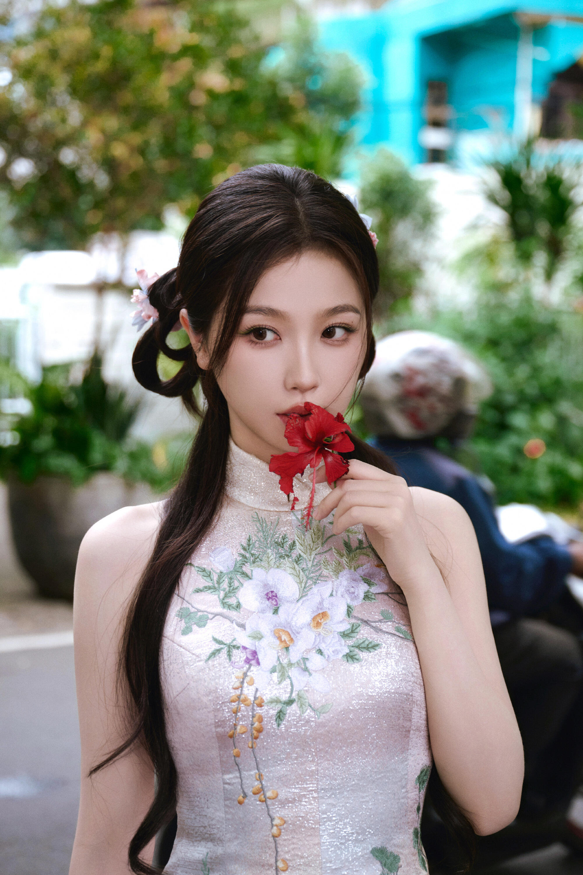 哇!虞书欣旗袍造型好漂亮,身上的图案是什么花呀?石榴花?