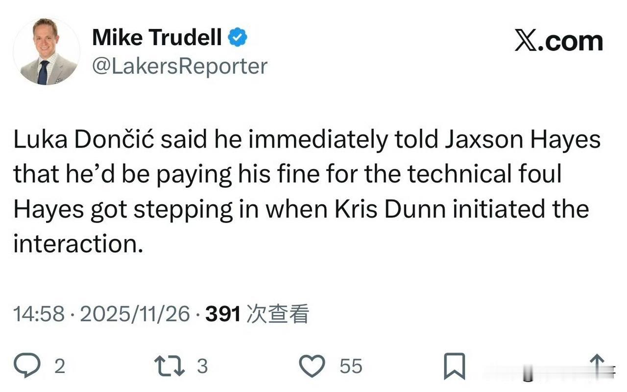 东契奇被欺负了!!!海斯挺身而出保护东契奇,怒吃一T! 在今天快船对阵湖人的比赛中,由于比分相差比较大,快船球员也是挂不住面子,于是在一个回合中双方发生了冲突。 东契奇在争抢篮板的时候被对方碰到,于是他起身上前理论被邓恩直接拿球顶住颈部以下部位,此时篮下的海斯看在眼里,他立刻冲上前去推了邓恩为东契奇出气,双方爆发冲突。 经过裁判回看确认直接两个技犯将邓恩罚出去了,海斯也因此怒吃一个技犯,估计明天就要被罚款了。 东契奇也是很仗义,他当时就告诉海斯罚款他来处理,这就是你为我出头,我为你买单,湖人的队员很是团结一致。 海斯这方面做的还是非常好的,毕竟当家球星需要保镖,海斯让邓恩知道不要随便挑衅东契奇,估计下一次双方见面就是火药味十足了。 东契奇 湖人 快船