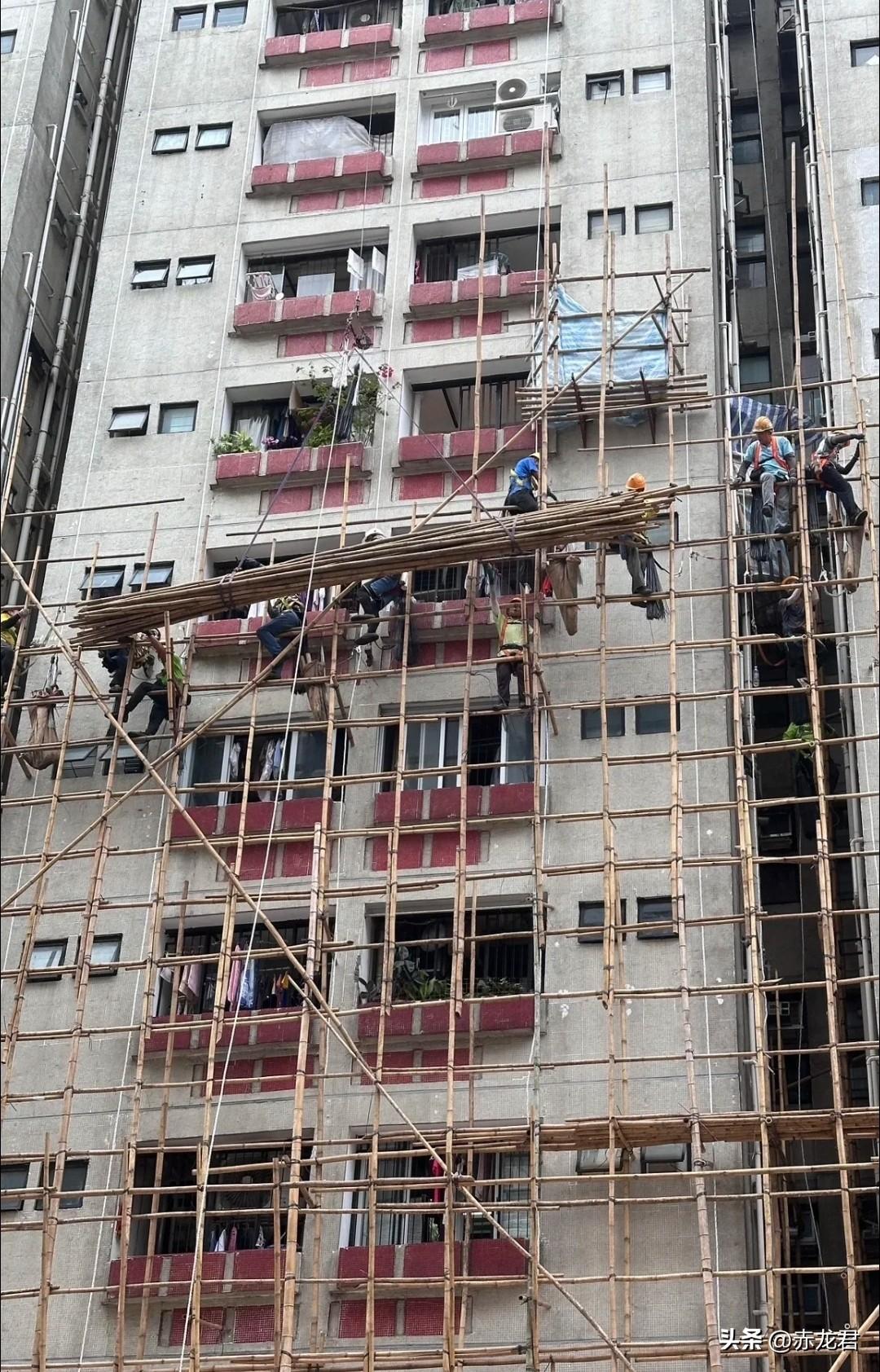 大陆早就不再使用「竹排」,基本都采用「钢架」了。从此次香港大埔的火灾情况来看,「竹排」确实存在缺点,不过,其优点也着实不少,这也使得香港至今仍未舍弃使用。例如,「竹排」材料较易获取,价格低廉,用完即可丢弃,无需像「钢架」那样进行维护和储存。大批量的「钢架」,维护成本极高。此外,「竹排」搭建十分容易,重量比「钢架」轻得多。大家来评判评判,究竟是「竹排」好,还是「钢架」好? 竹结构搭建 户外竹钢 竹船搭建 竹排竹架 竹架竹排 金河竹排 沙滩竹建筑