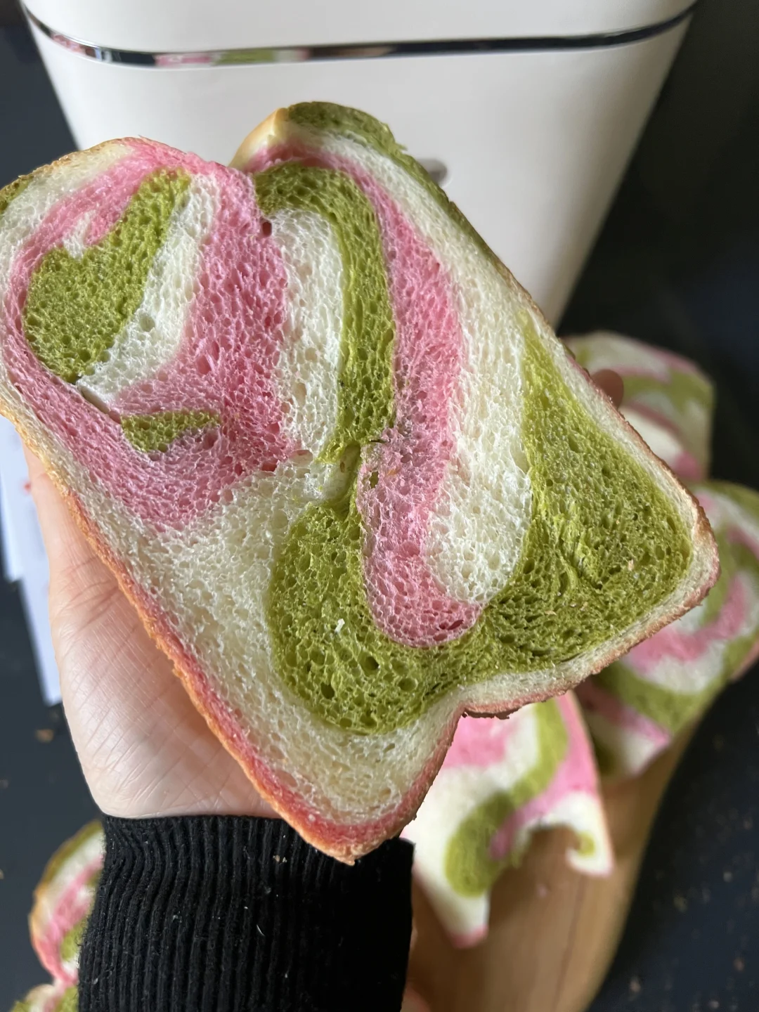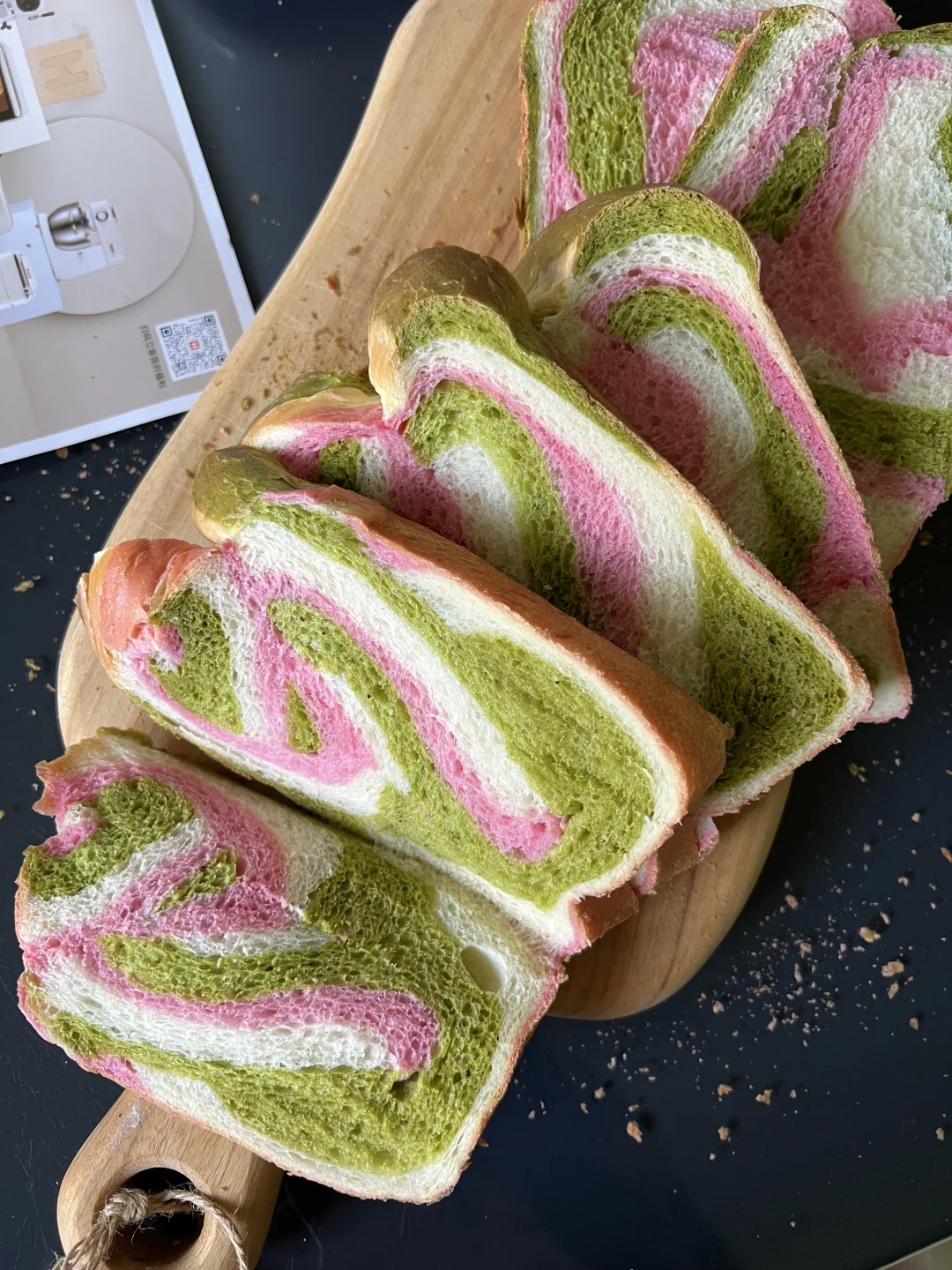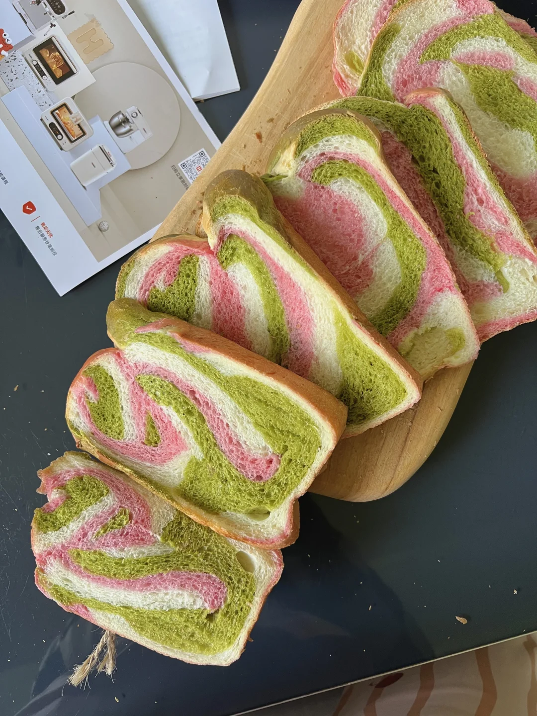 来吧,呈上我今天春日气息满满的三色吐司![派对R][派对R][派对R]