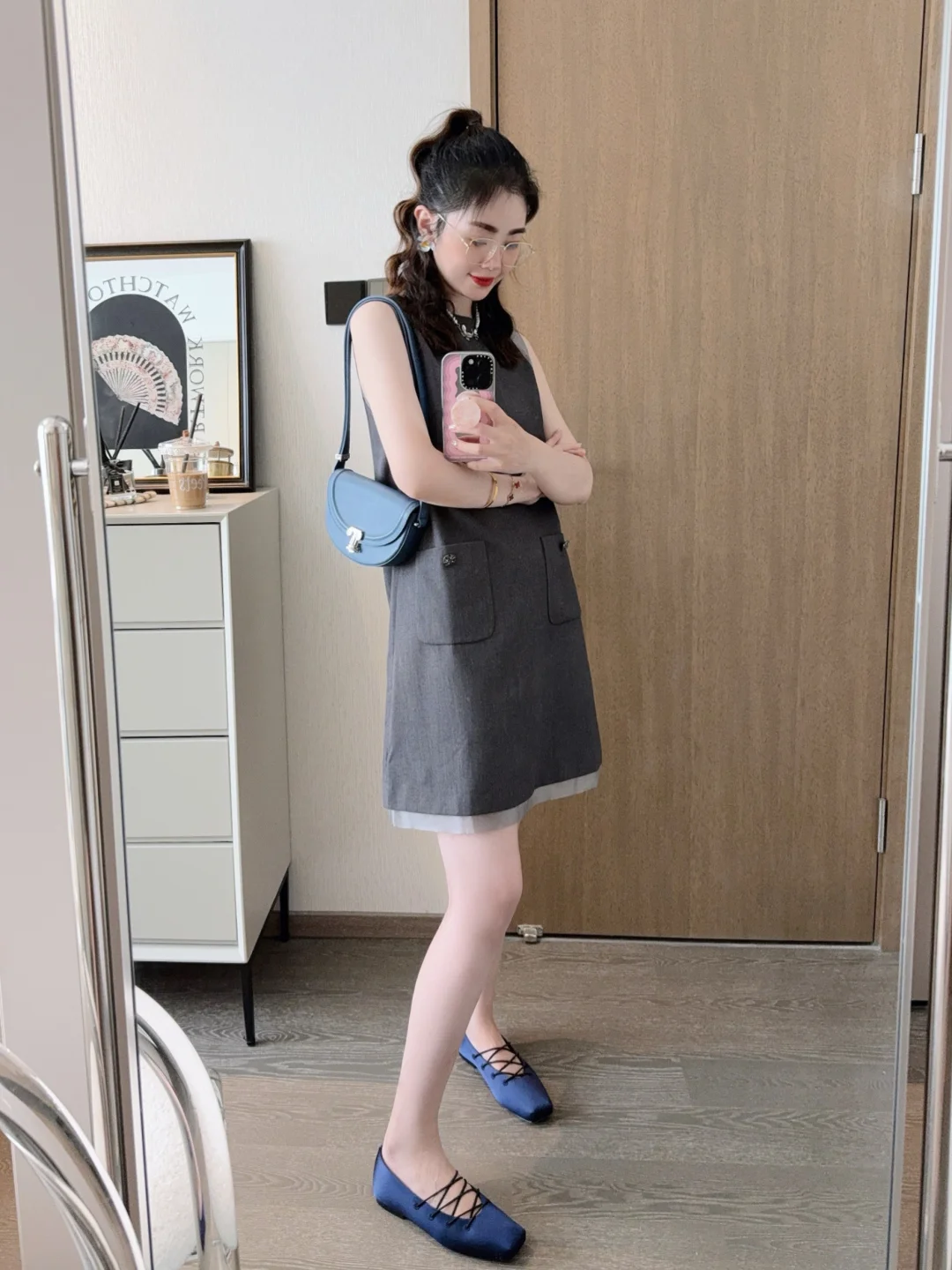 不出错通勤小灰裙get~ 我也太会选裙子了! 蓝灰配色永远是我内心的神仙色💙🩶 大家周一的班上的好嘛🫠🫤💼