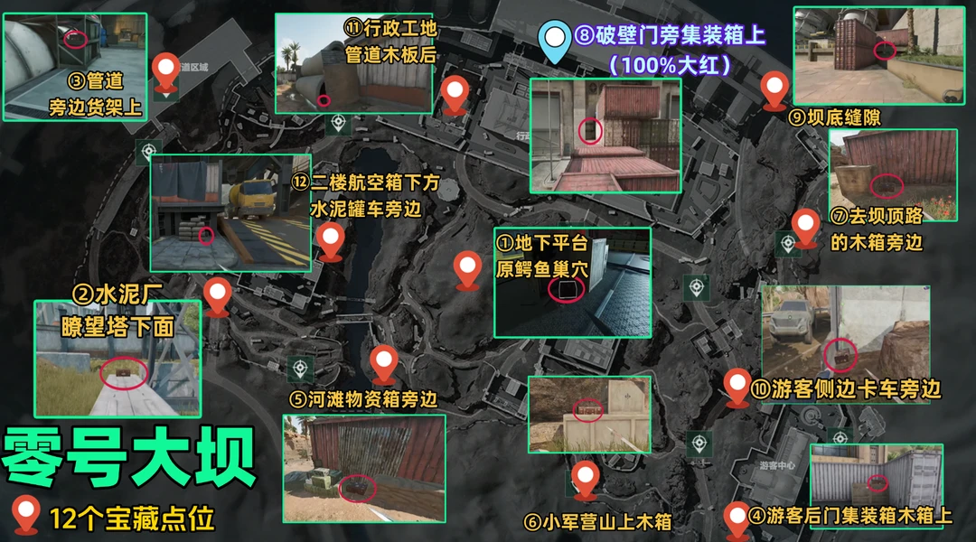 三角洲行动官方藏宝图标记得不准确,给大家准备了零号大坝宝藏的12个详细点位图!还有人没找到9号吗? 三角洲行动 三角洲鼠鼠拯救世界 三角洲破壁新赛季上线 勇闯游戏岛