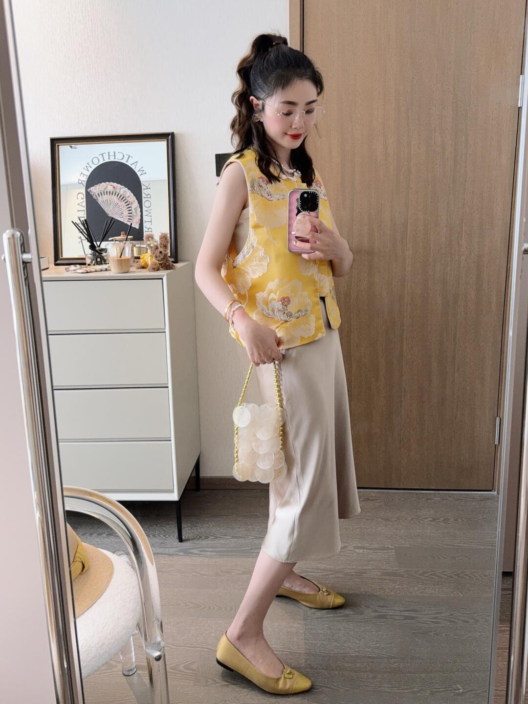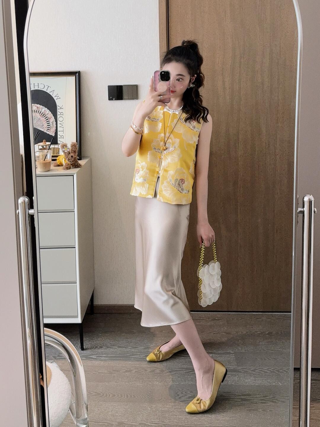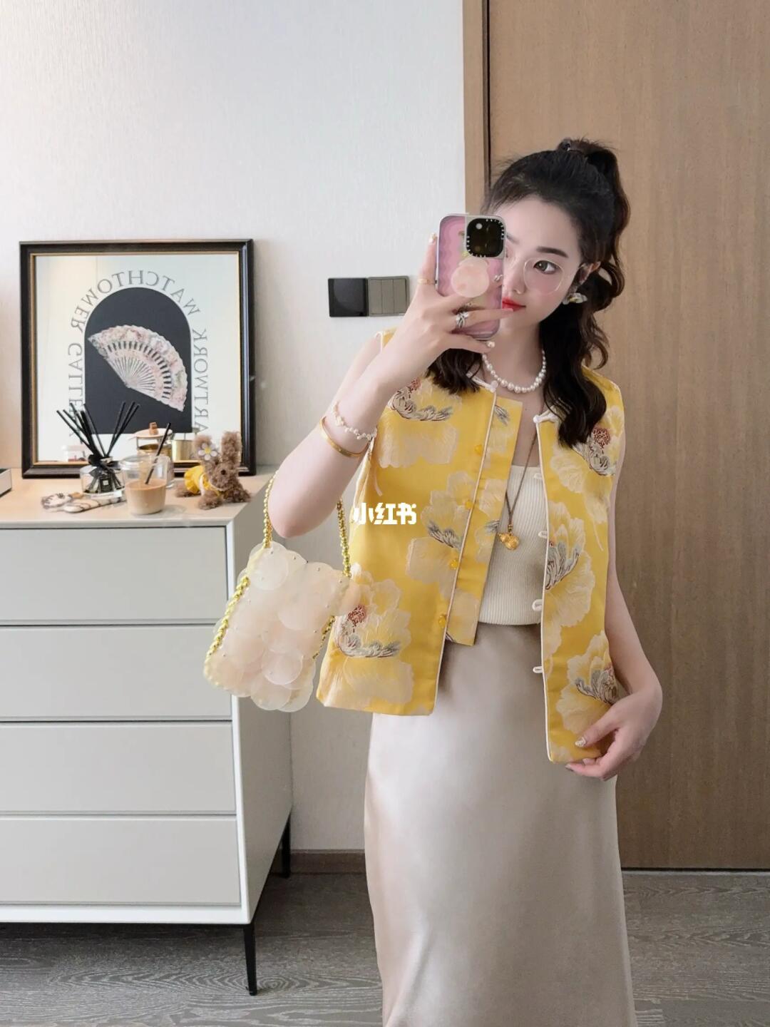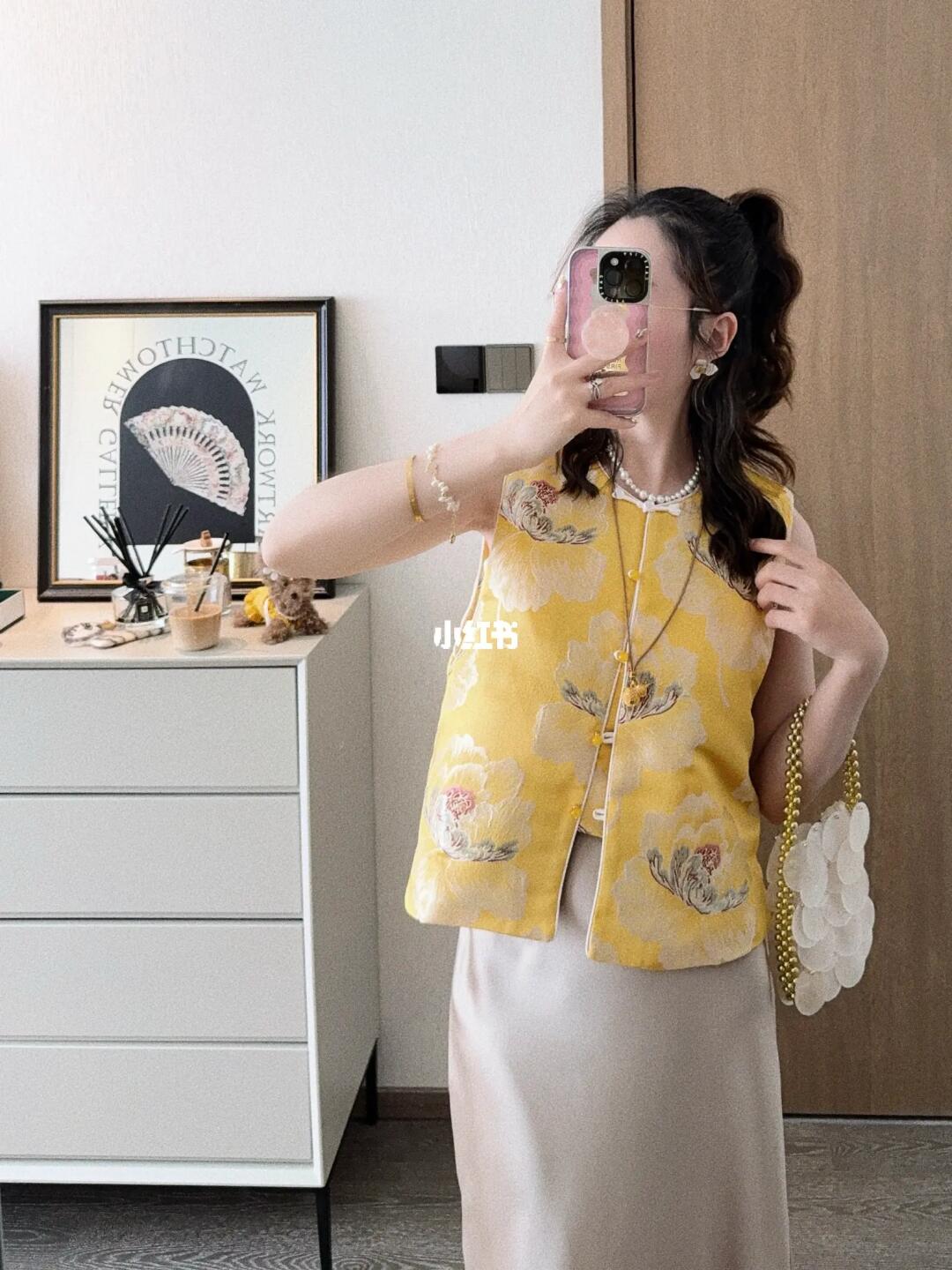 今年到手的第N件新中式马甲, 黄色真是难以掩盖的贵气~~ 梅雨季节的南京,有点子闷热~ 祝大家都有个愉快的周末🎈