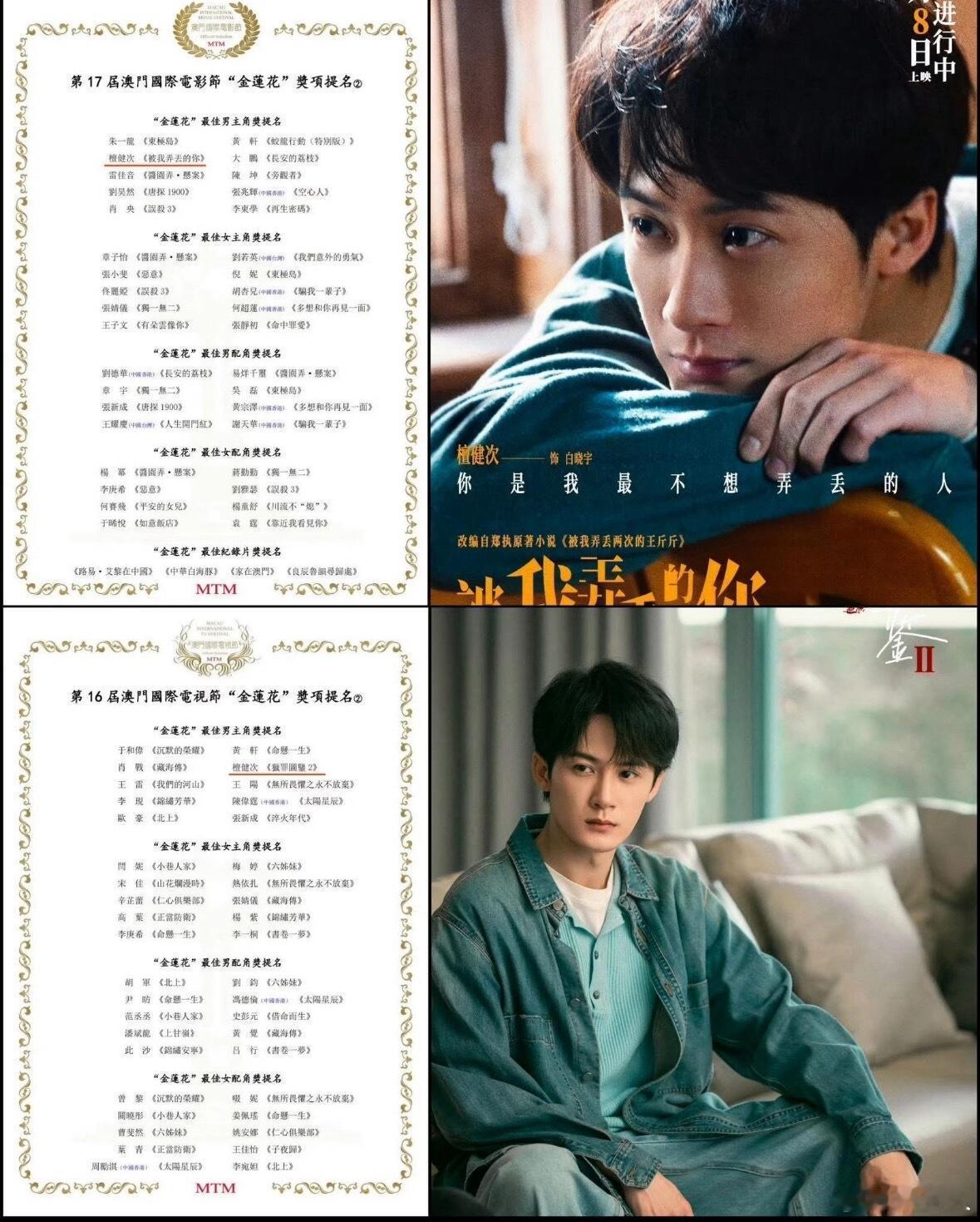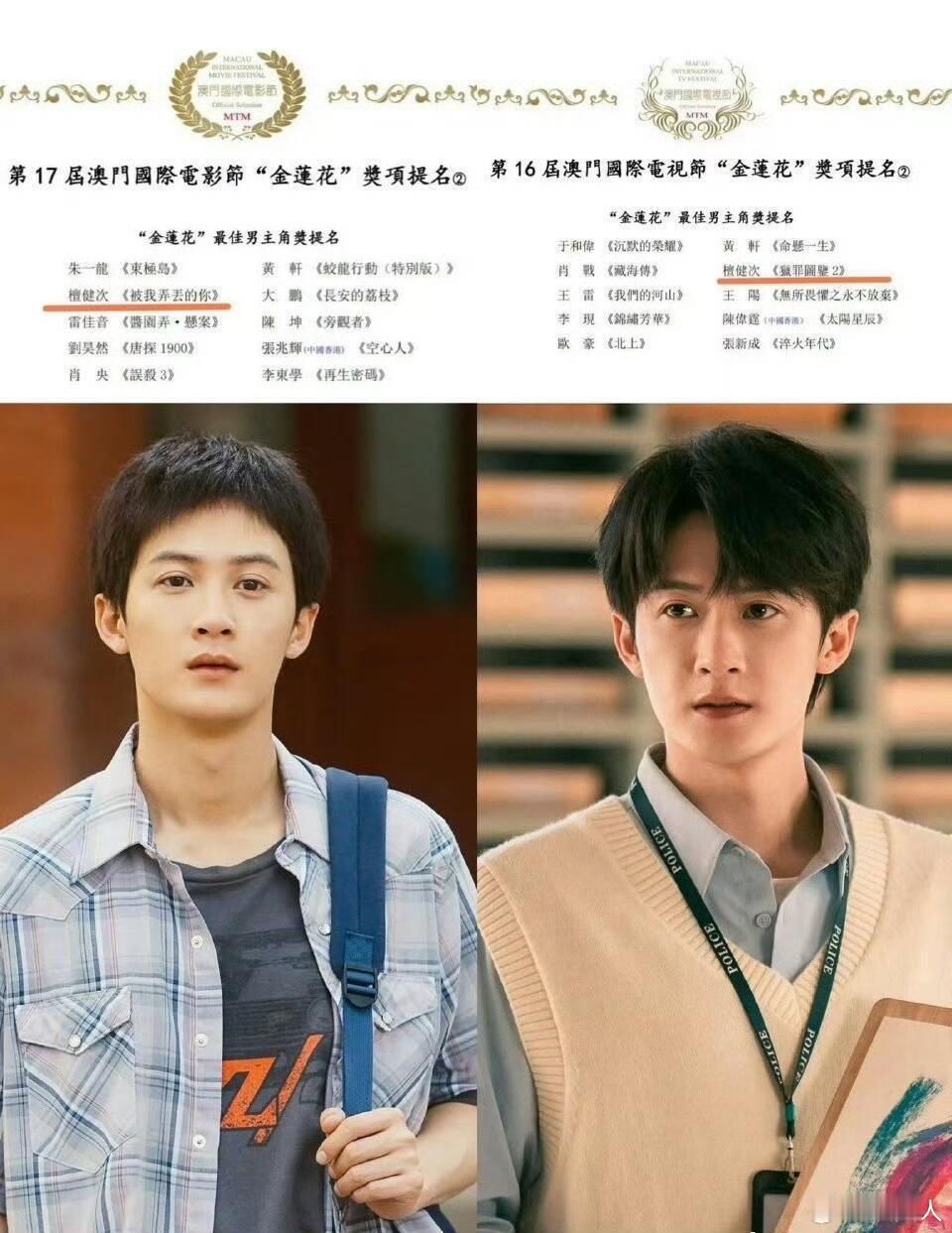檀健次双项提名金莲花!既是悬疑剧里逻辑满分的沈翊,也是爱情片中触动人心的小城青年。好演员从不设限,未来持续闪耀!✨