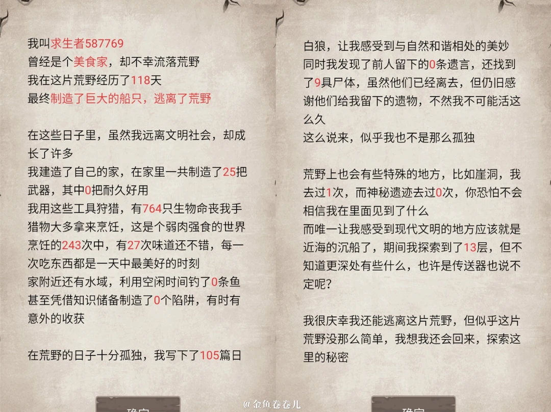 ❣️名称:《荒野日记:孤岛》 ❣️设备:安卓✔️ 苹果✔️ ❣️类型:探险生存类 ❣️人物:流落到荒野的人 🌟大概一年前刷通关过一次,当时真的是超级入迷,这次重刷发现更新了很多内容,比之前更耐玩。