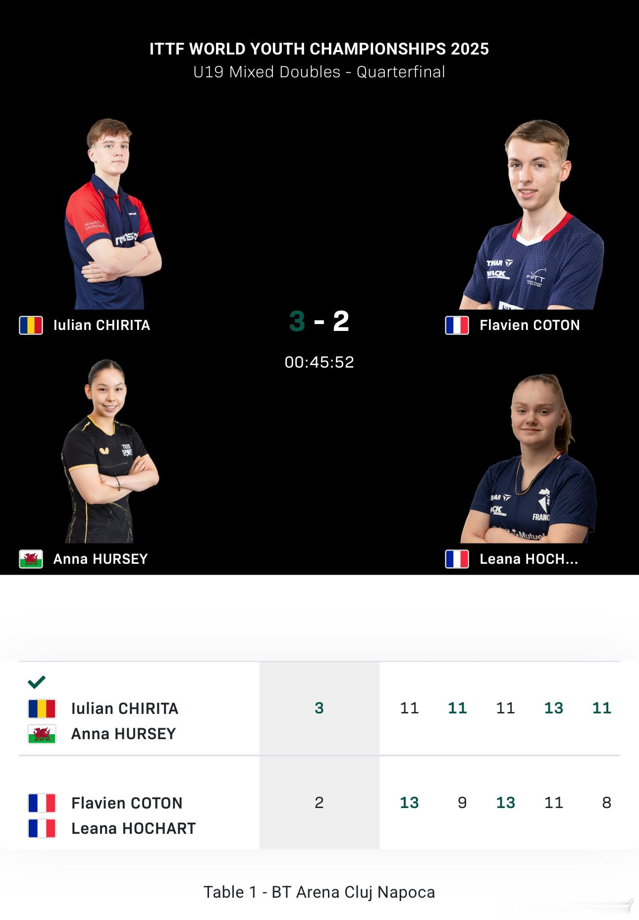 2025世青赛U15男团决赛中国台北3-2意大利陈凯程0-3特维山郑旻修3-2法