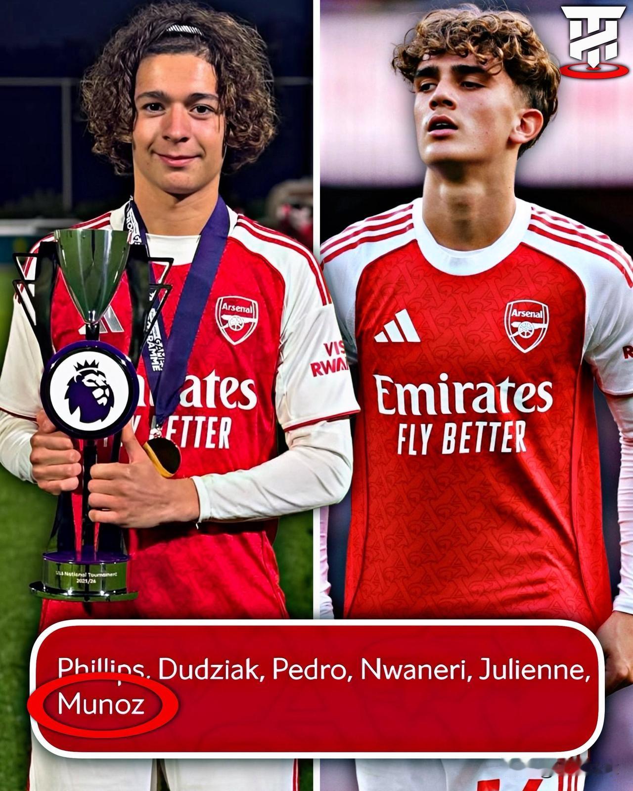 年仅13岁的中场球员路易斯·穆尼奥斯刚被选入阿森纳U19梯队——若他登场亮相,将打破马克斯·道曼保持的纪录,成为欧洲青年联赛史上最年轻的出场球员。 穆尼奥斯本赛季在阿森纳U15和U16梯队表现惊艳,几个月前还首次入选了英格兰U15代表队。 今日道曼同样为阿森纳U19首发,而穆尼奥斯已以最年轻球员身份进入U19大名单刷新了其纪录。这位天才少年甚至要下个月才满14岁。 13岁便在对阵拜仁慕尼黑U19的比赛中进入替补席堪称史无前例——阿森纳再次证明其拥有全球顶尖的青训体系。