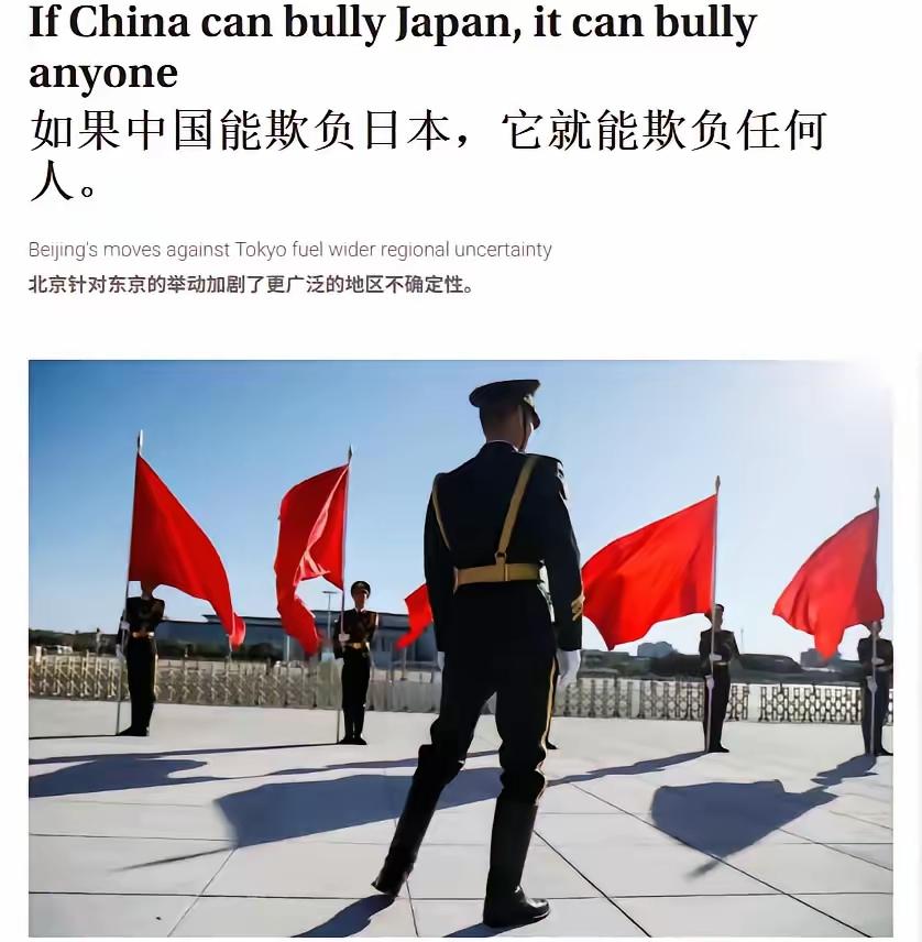 这是日本主流媒体《日本时报》的一篇文章,“如果中国能欺负日本,它就能欺负任何人”。 看来,日本人对于当今世界局势还是有着很大的误区。 第一,中国不会欺负任何人。但是,还是那句老话,人不犯我我不犯人,人若犯我,我必犯人。 第二,现在的中国,有能力让日本变成人类遗址。 第三,日本人是不是以为他们在世界上很厉害,其实,中国现在根本不把日本放眼里。以前满清时期,中国不把日本放眼里,那是骄傲自大,现在不把日本放眼里,是真的“杀鸡焉用牛刀”!