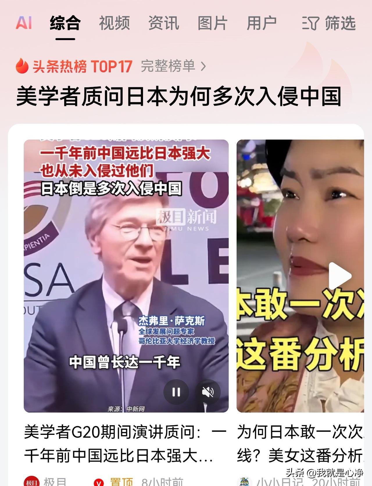 其实外国不是没有清醒的学者,只不过这些清醒学者的声音被他们的媒体给压住了。 无法传递到民众的耳朵里。 政治正在干扰他们的学术界。 一旦给他们一个平台,这些人说出的真相会让整个西方民众瞠目结舌的。 G20峰会期间,美国著名的经济学家杰弗里.萨克斯。 所发布的言论就让西方的民众非常的震惊。 这位哥伦比亚大学的经济学教授明确的表示。 1000多年前中国远比日本强大无数倍。 却从来没有入侵过他们。 为什么日本却数次的入侵中国呢? 这个问题拷问整个世界的良心啊。 唐朝时候的白江口战役,明朝时候的倭寇入侵,明朝中叶还有丰臣秀吉入侵朝鲜。 到近代又有甲午海战以及918和七七事变。 日本这个民族亡中华文明之心不死。 他们几千年来的一个核心战略就是,学习,然后入侵。 入侵失败之后再学习,再准备下一次入侵。 这就是日本民族。 而且这个民族非常清楚,中国人太善良了。 你就算入侵了他们,他也不会报复你的。 也就是说日本这个民族的野蛮性是大陆文明给惯出来的。 他打你了,你包容了。 他抢你的钱了,你也包容了。 他杀你的人了,你还包容了。 那么请问问题出在哪里了? 毛病都是惯出来的。 为什么看见美国和俄罗斯日本人会有发自内心的恐惧。 因为日本人很清楚人家真的会报复,而且报复的极其凶狠。 这是一个极其欺软怕硬的小人民族。 如果这一次我们还是不把他打疼了。 还是高高举起轻轻放下。 那么以后他们会更加的放肆。 对付野兽就应该用野兽听得懂的语言。