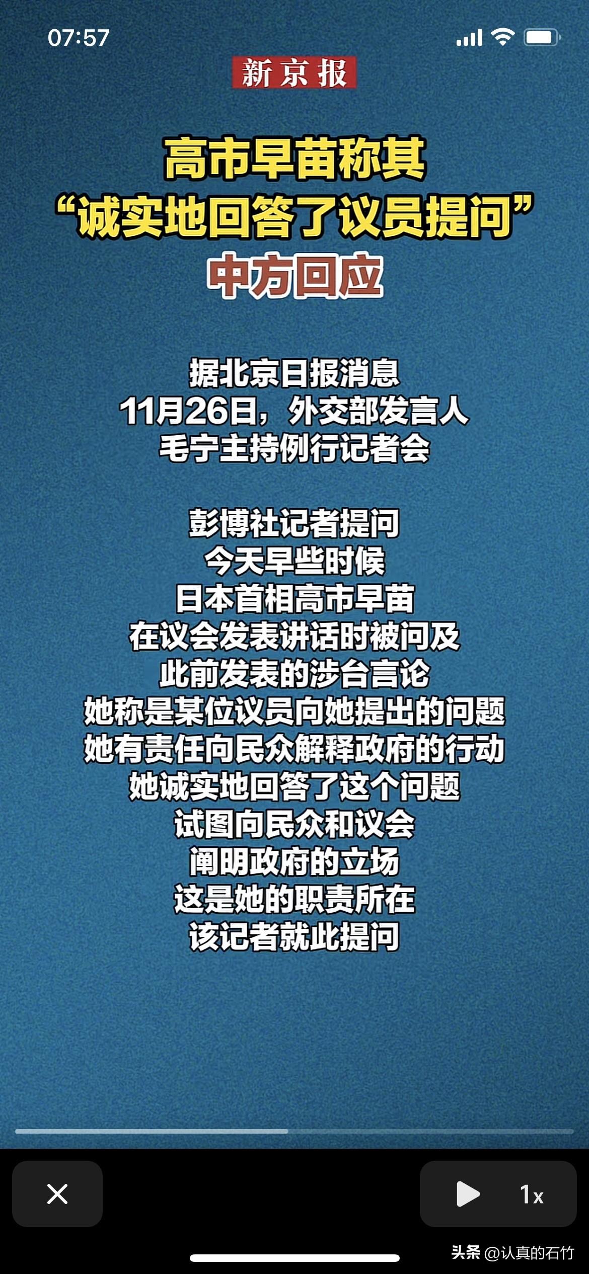 高市早苗说她只是诚实的回答了问题 高市早苗应该说的就是真心话。 日本政府就是这个