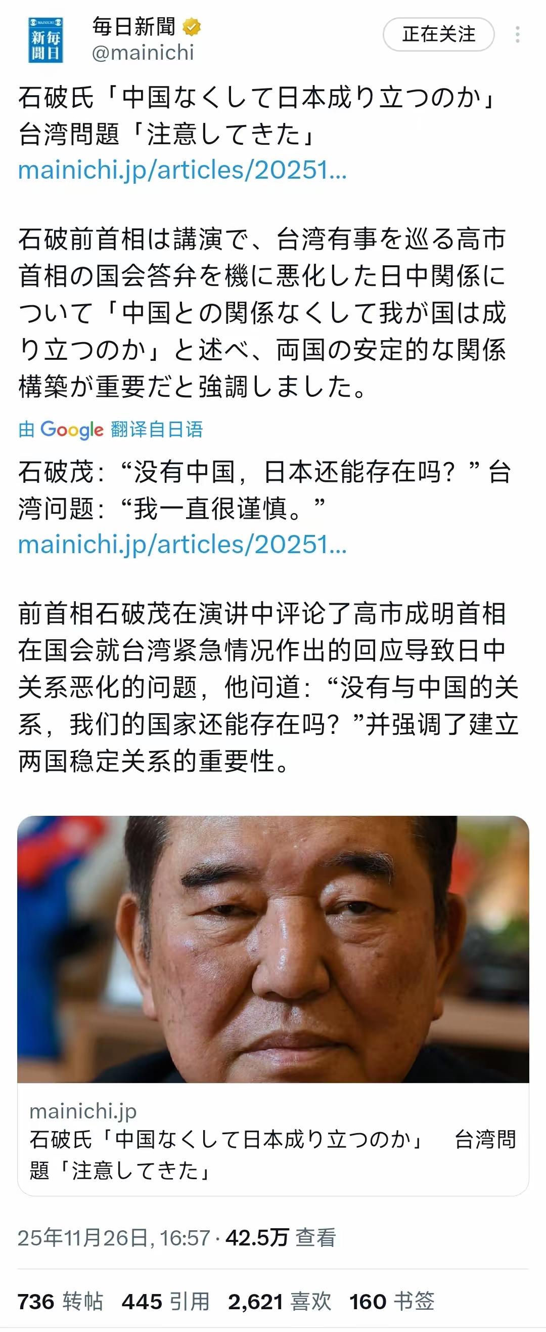 石破茂:“没有中国,日本还能存在吗?” 石破茂说了句清醒的话!相比那些激进政客,石破茂看得明白,不过日本也得拿出实际行动,别光嘴上说说。