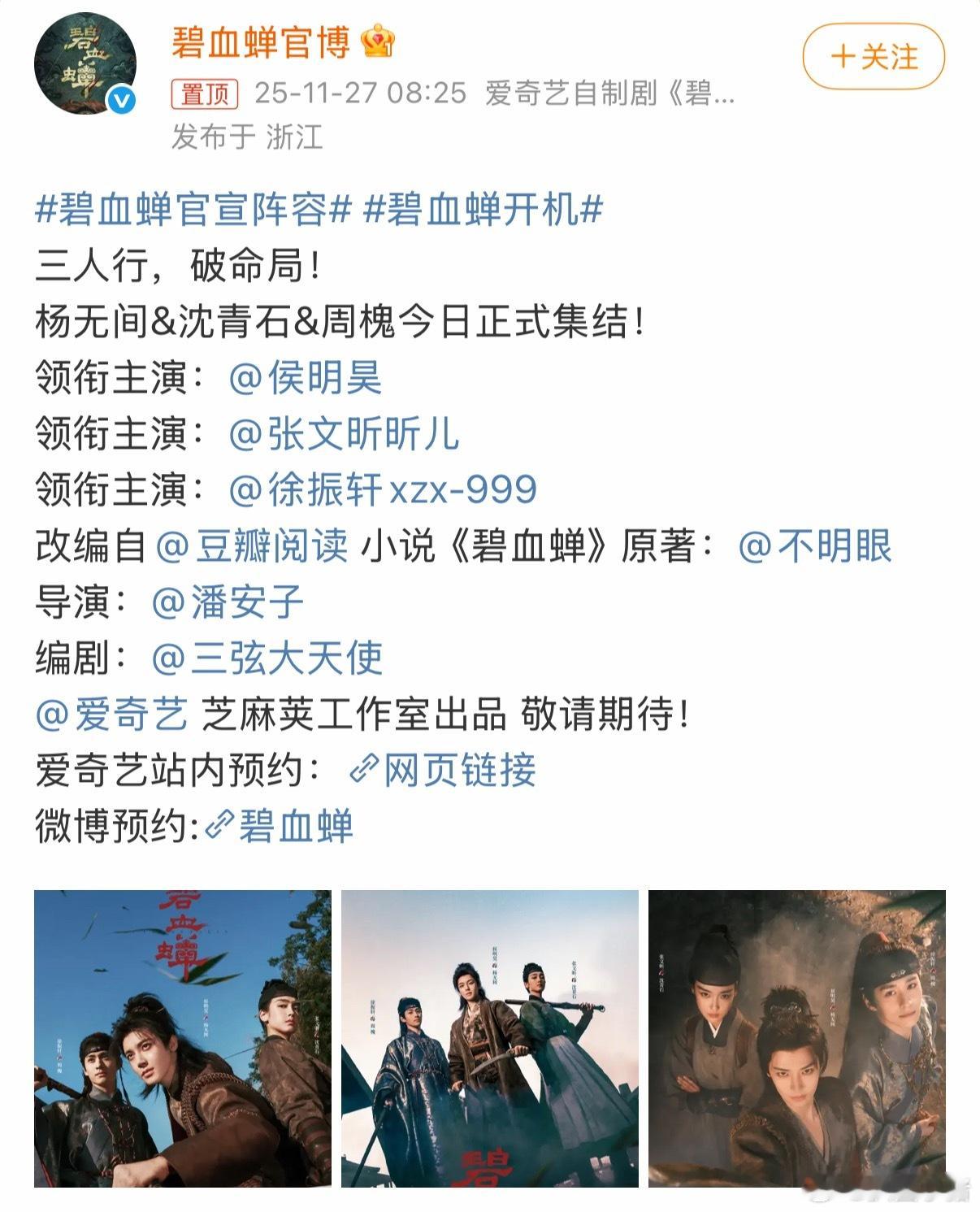 侯明昊、张文昕、徐振轩 《碧血蝉》官宣海报碧血蝉官宣阵容