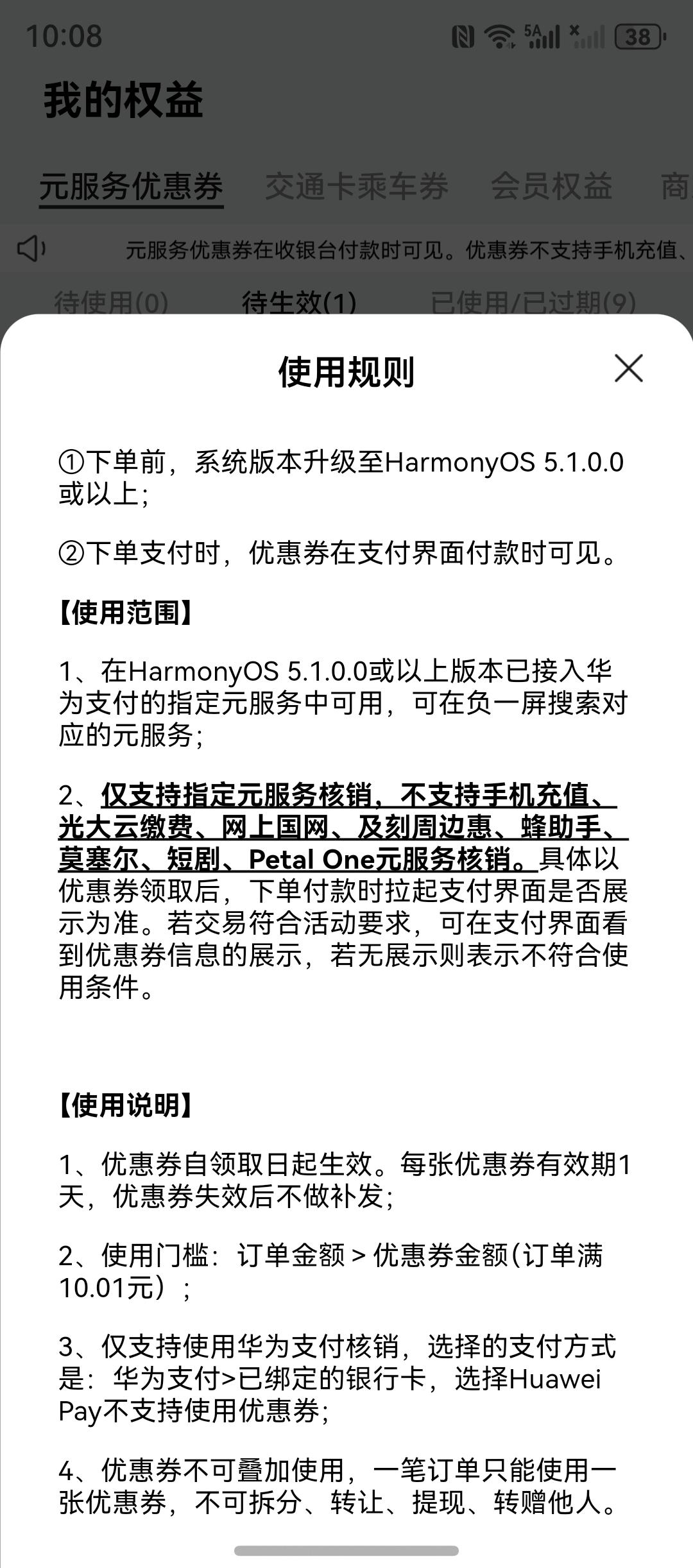 鸿蒙用户又有福利了,11月28日当天可享10元优惠券,指定消费场景满10.1元立减10元,现在已经可以提前领券。 这是11月28日