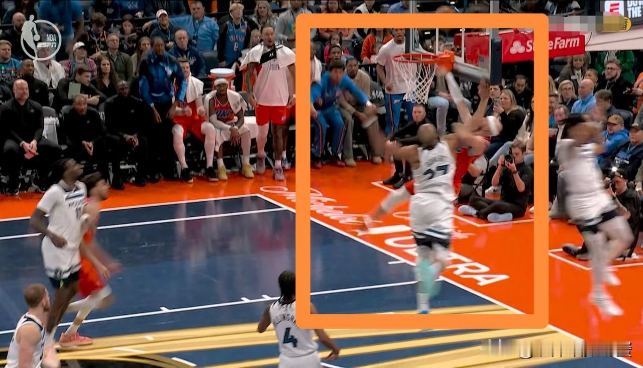森林狼恶汉戈贝尔真是太狠了!在今天森林狼客场挑战雷霆的比赛中,当时比赛进行到了第四节的七分多钟,戈贝尔在篮下补防的时候对人不对球,直接将雷霆大将卡鲁索劈头盖脸的放倒在地,险些造成卡鲁索的受伤。对于戈贝尔的这次凶狠犯规,裁判在观看了录像回放以后将戈贝尔的普通犯规升级为了一级恶意犯规。