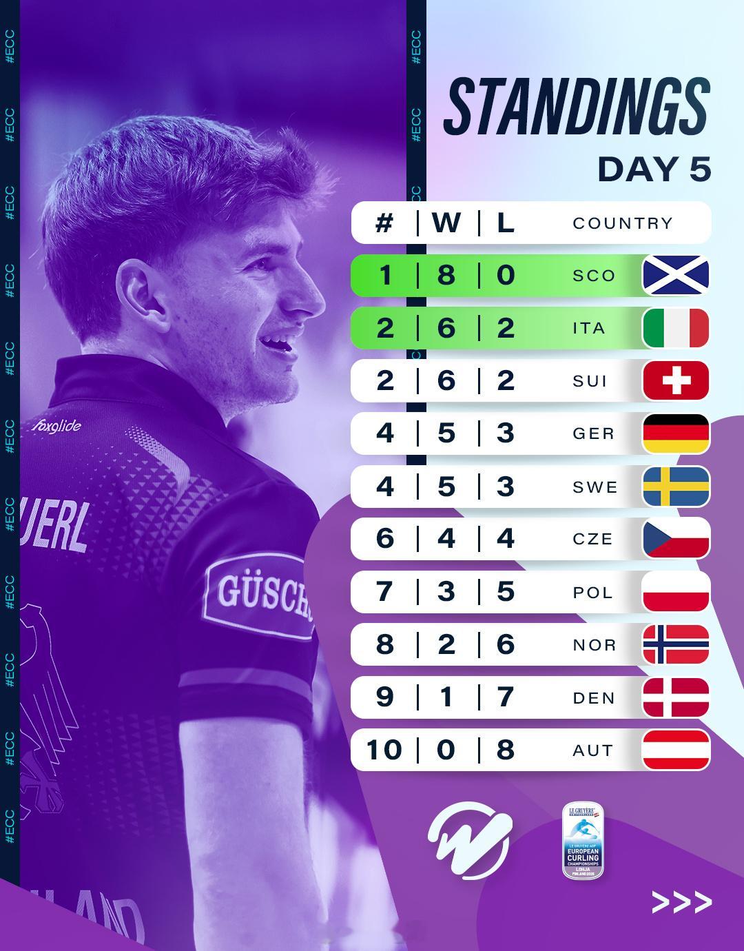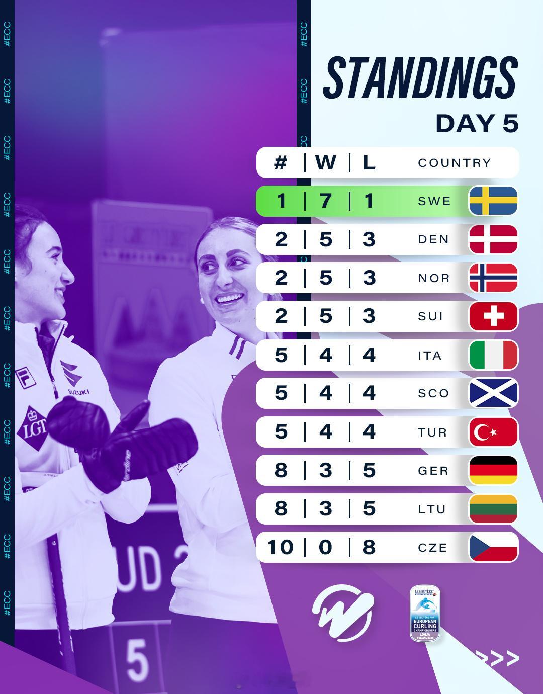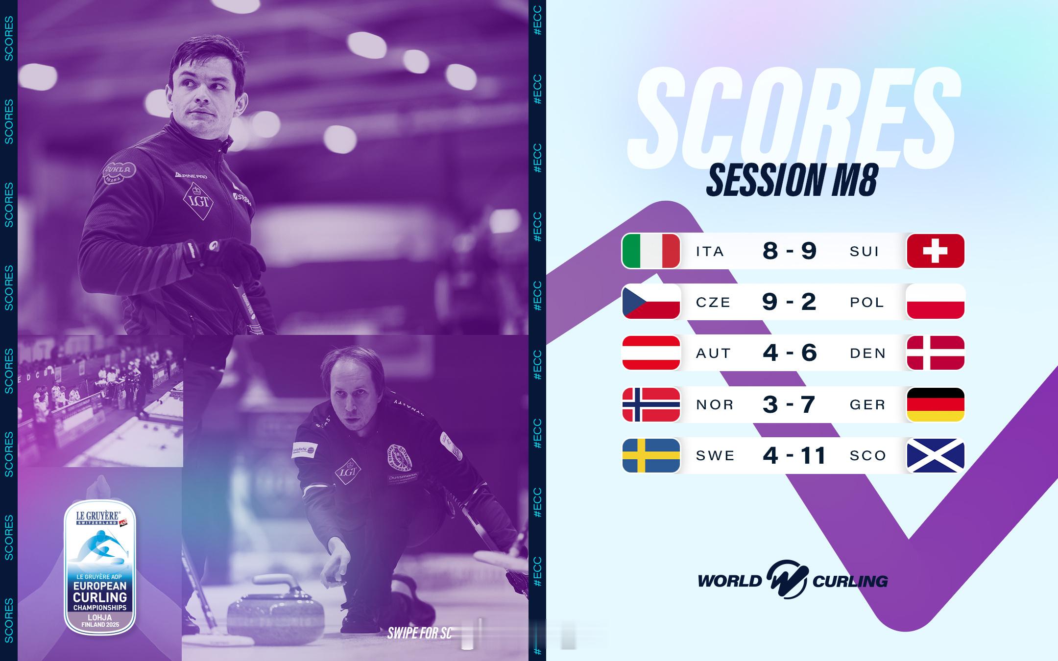 2025欧洲冰壶锦标赛 循环赛第五天赛果及排名
